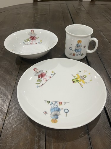 Vintage Bavarian W. German Hummelwerk Porcelain Childs Dinner Set Clowns 1930s
