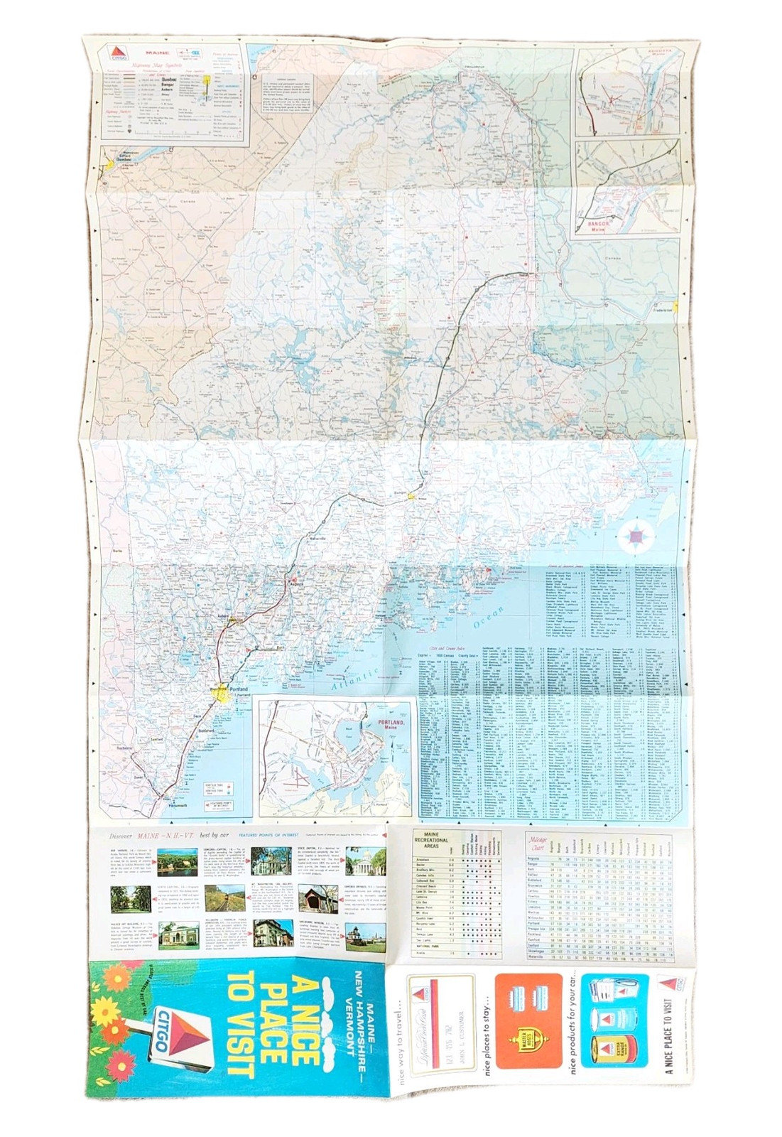 1960 Maine New Hampshire Vermont Road Map Citgo Gas & Oil 2 Sided Vintage E98B