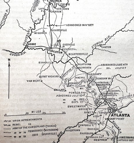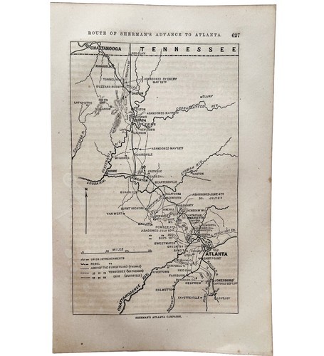 Map 1866 Civil War Sherman Atlanta Campaign Victorian Military Rebellion DWY7