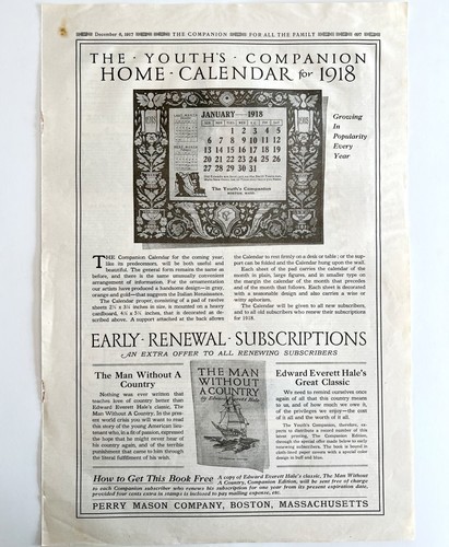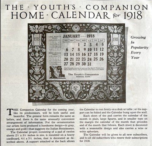 1917 Youth's Companion Calendar Advertisement Full Page Antique LGADYC4