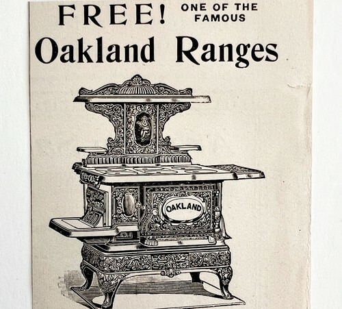 Oakland Range Wood Stove 1897 Advertisement and similar items