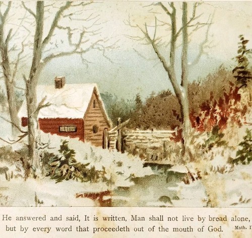 C1920s Religious Greeting Card Mathew IV Man Shall Not Live By Bread Alone E88H