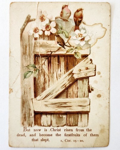 1930s Religious Card Christ Is Risen Birds Flowers Christian Ephemera E88G