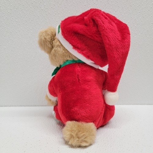 Vintage Enesco 1983 Plush Baby's First Christmas Sitting Teddy Bear Zip Pajamas. Images show actual item that will ship.