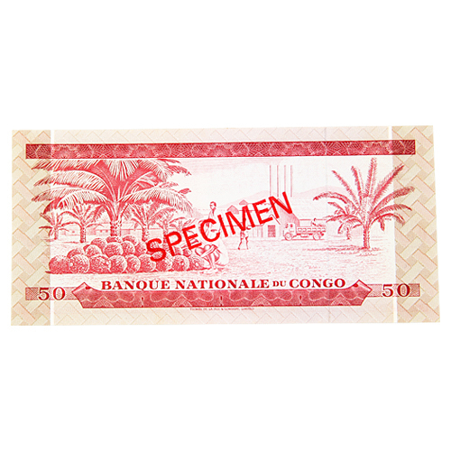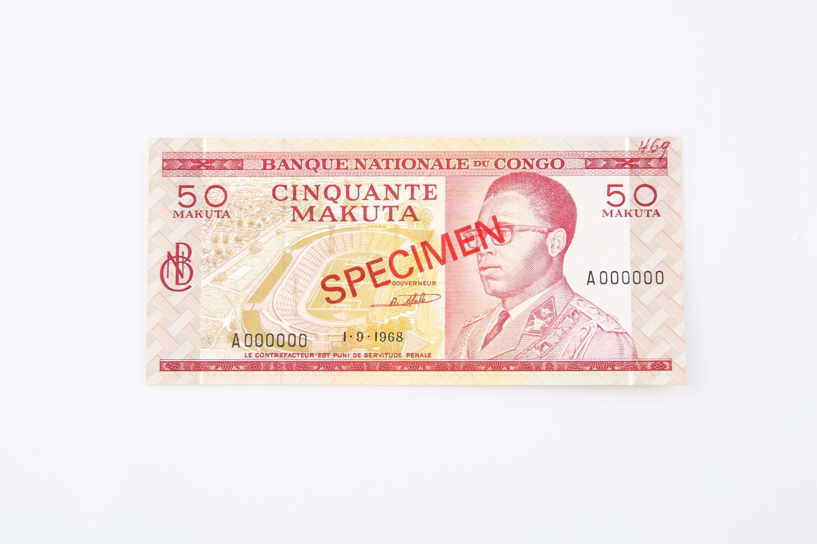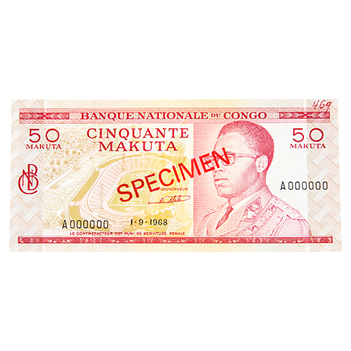 1968 Congo 50 Makuta Esemplare Nota UNC W/Rosso Inchiostro Segno P11