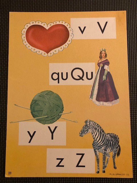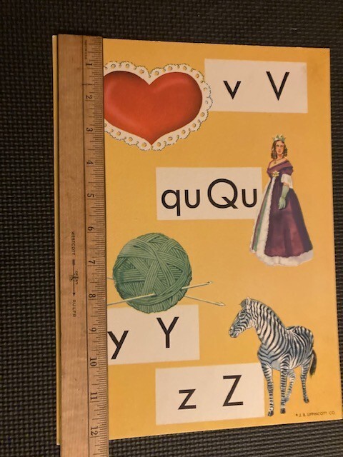 Flash Card Vintage Large Colorful School Alphabet V, Q, Y, Z JB Lippincott Co