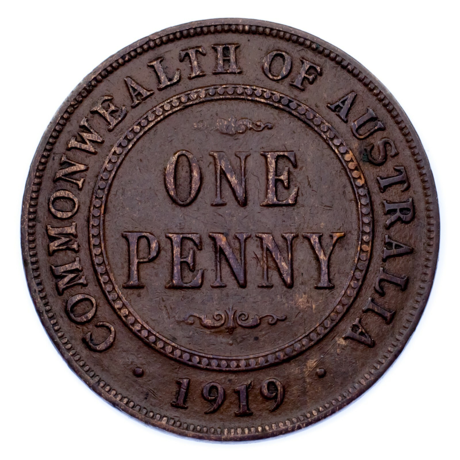 1919 Penny (desplazamiento inferior de punto) - Mintage: N/A - KM# 23 - Muy bien (XF)