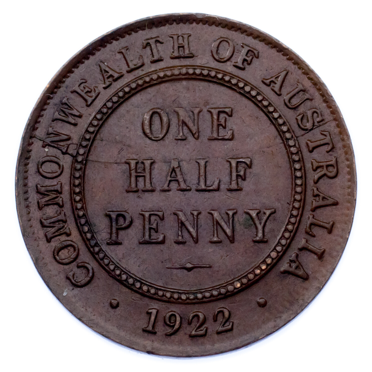 1922 Half Penny - Mintage: 9,924,000 - Km# 22 - Extra Fine (XF)