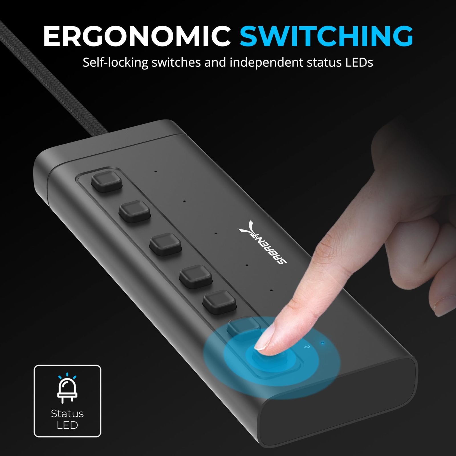 SABRENT 7-Port USB-C Hub with Power Switches 5Gbps USB 3.2 48W Powered Hub wi...