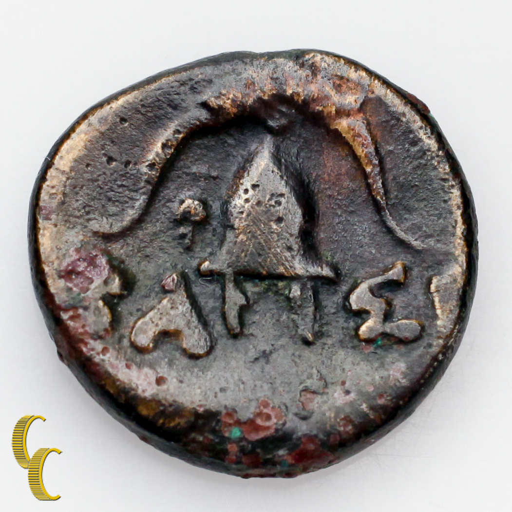 Revers : lettres grecques sous le casque et petite ancre a gauche