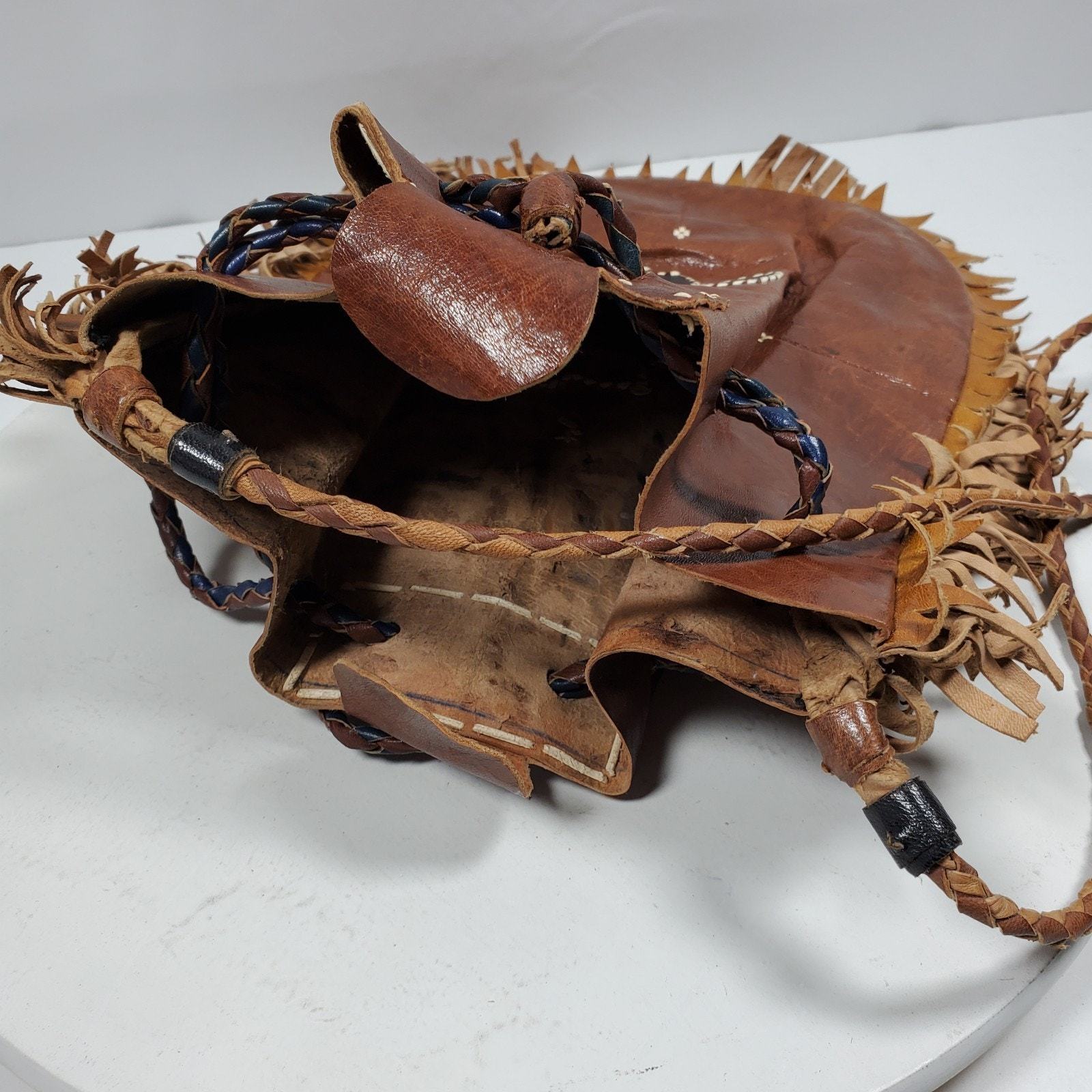 Vintage Hippy Leather Fringe Bucket Tie Purse Handcrafted