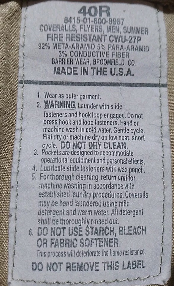 Vintage CWU-27/P Fire Resistant Military Jumpsuit Coveralls Flyers Tan Size 40R. Condition is Used. Shipped with Economy Shipping from outside US.