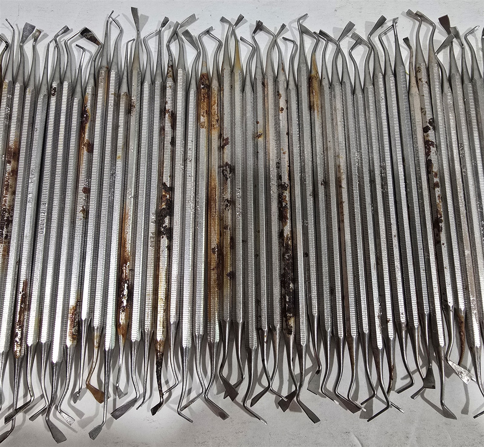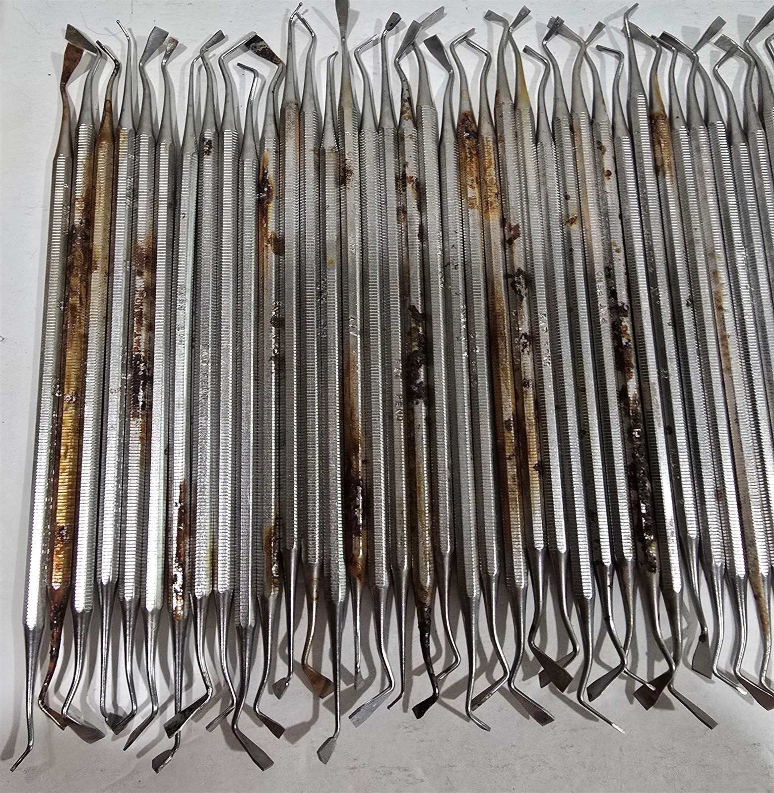 This sale is for a lot of fifty (50) vintage dental instruments, I bought an old dentist's office and the basement is filled with goodies, all the same, very rusty muddy (there was a flood in the basement at one point), great for crafts and steampunk, made by American Dental Mfg Co, what you see is exactly what you get, from a smoke free home.