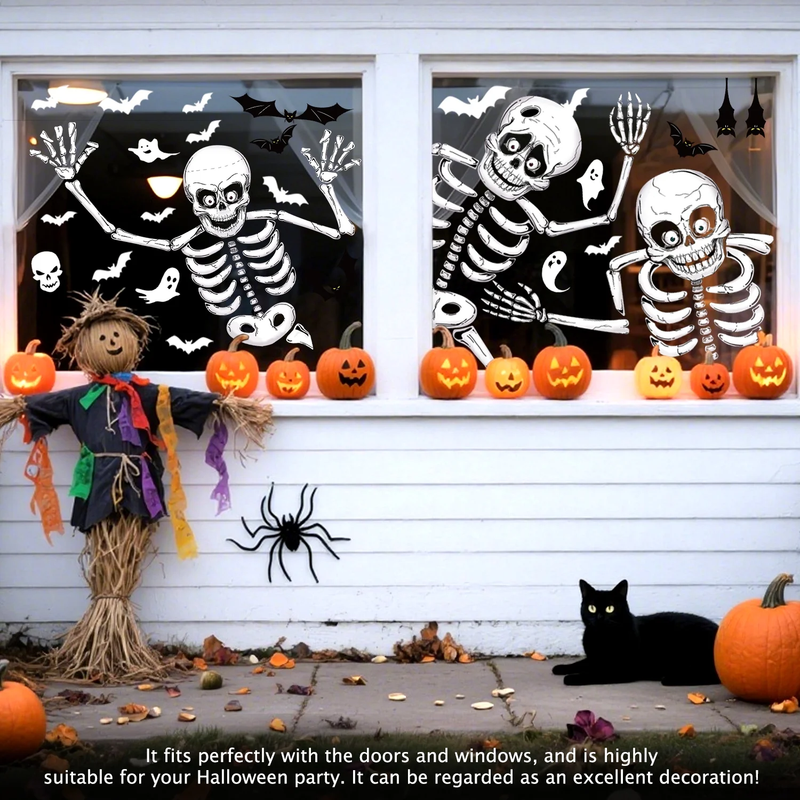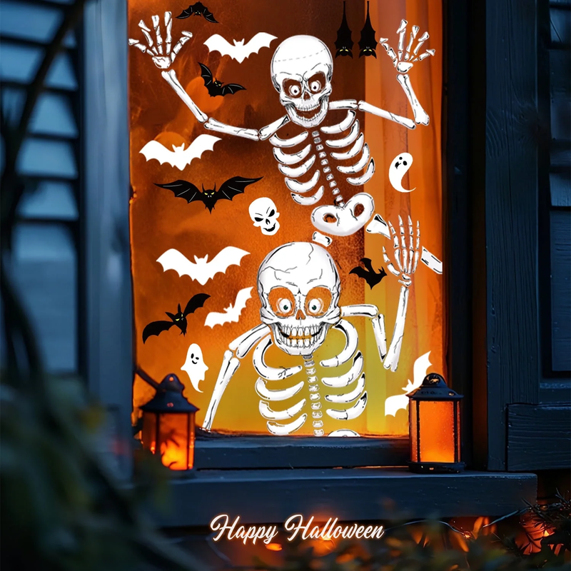 Halloween Window Clings for Spooky Halloween Window Decorations, Skeleton Ghost Halloween Window Stickers
