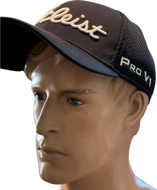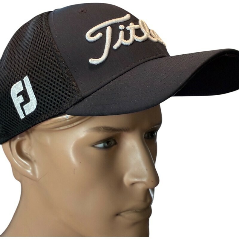 Titleist Pro V1 FJ FootJoy Golf Black Mesh Flex Stretch L/XL Fitted Hat Cap