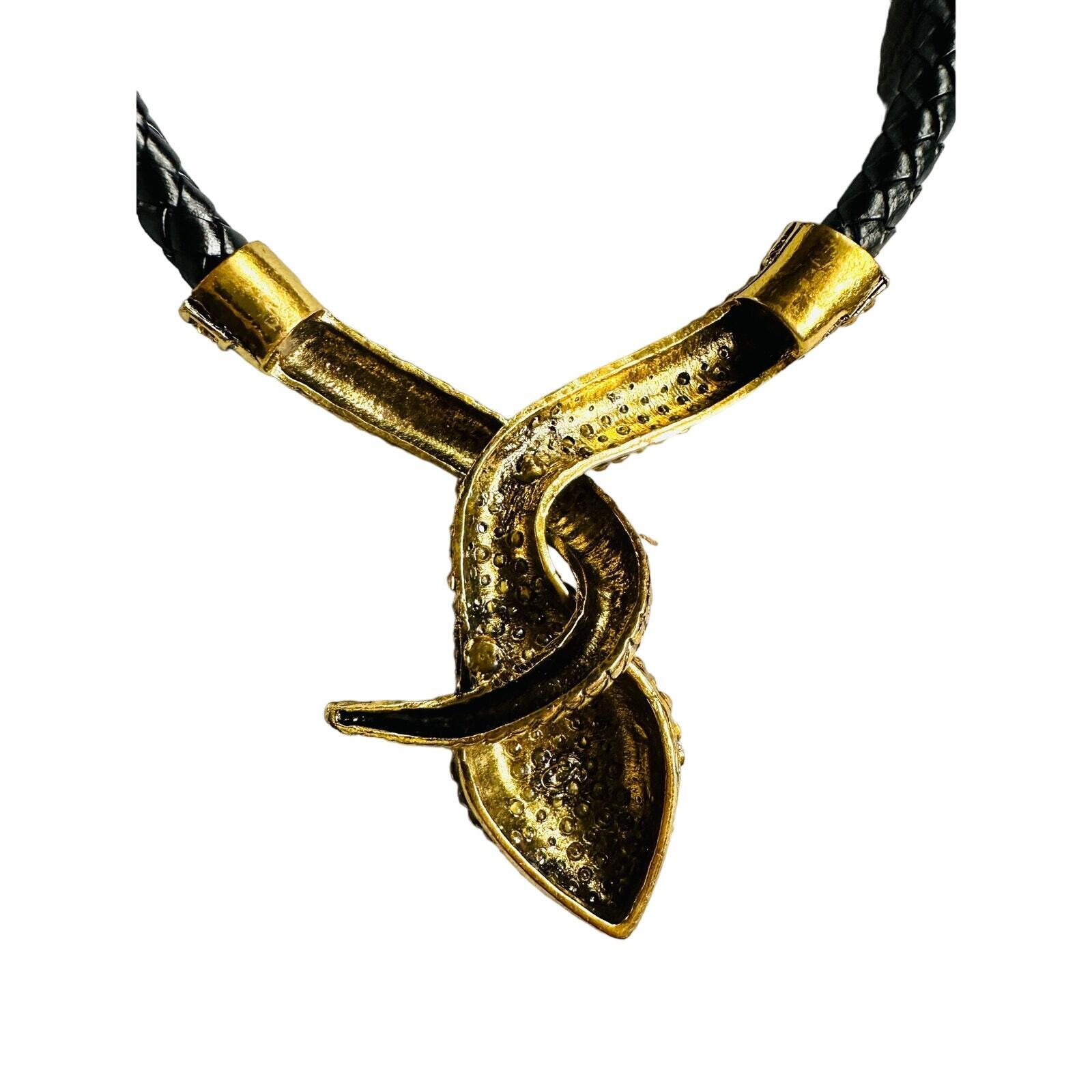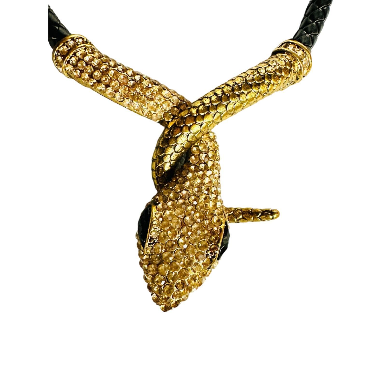 VTG 80s Egyptian Revival Snake Cleopatra Choker Necklace Gold/Leather Rhinestone