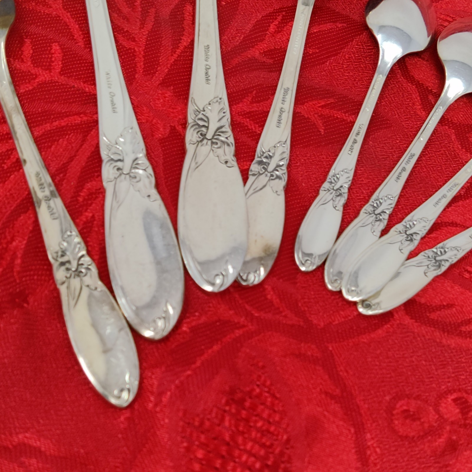 8X Serving Silverplate Demitasse Spoons Oneida Community White Orchid Flatware