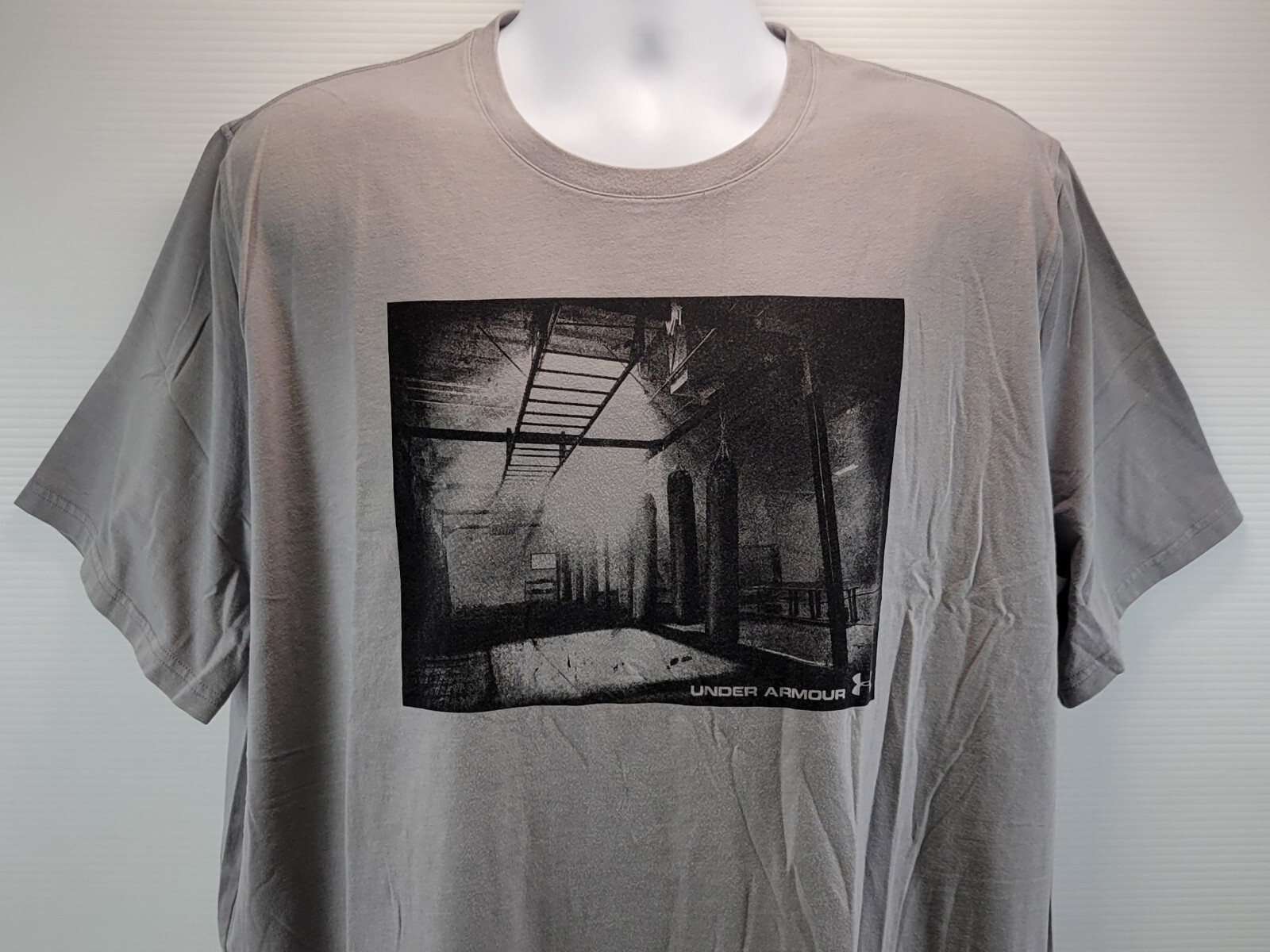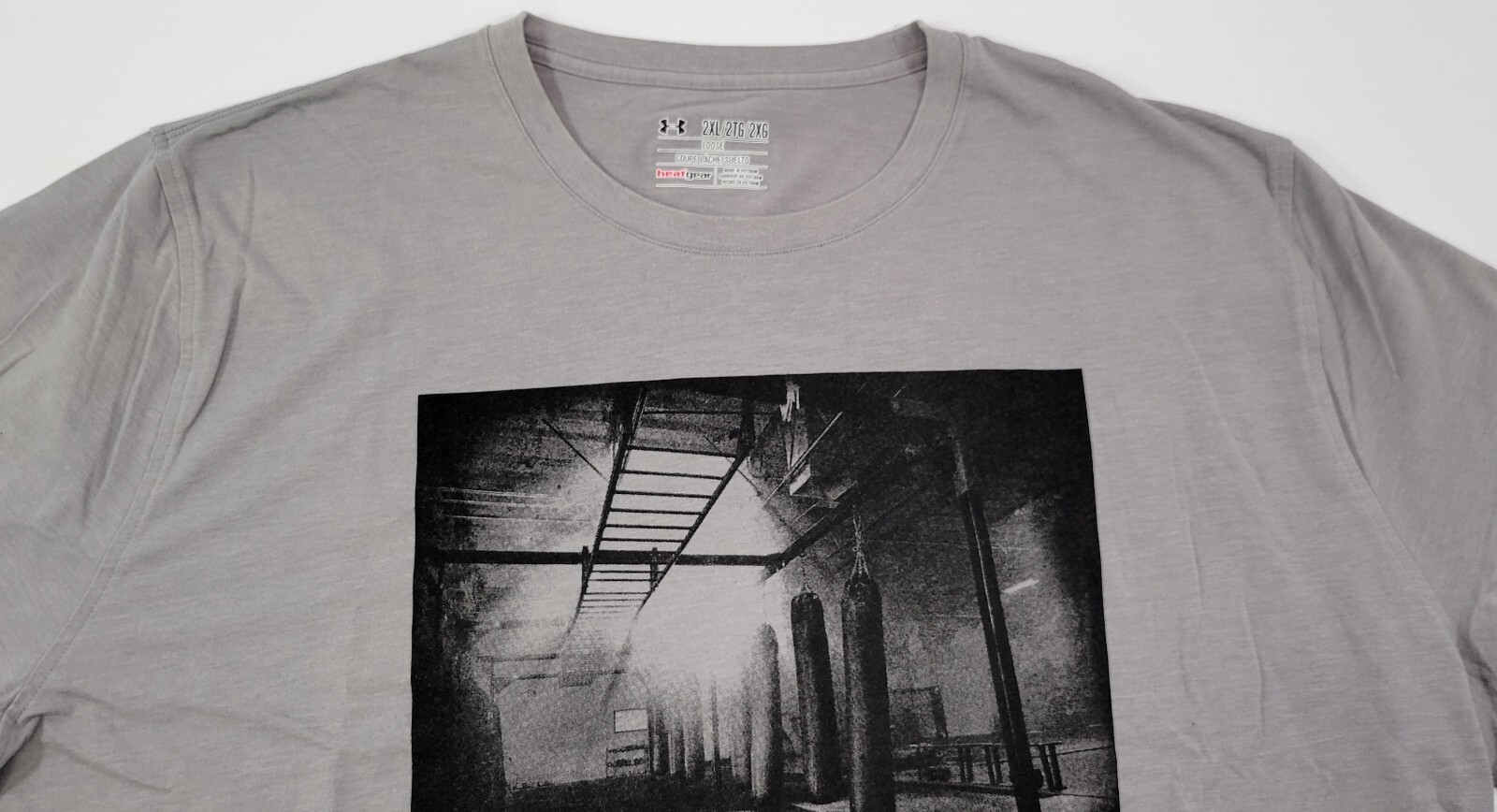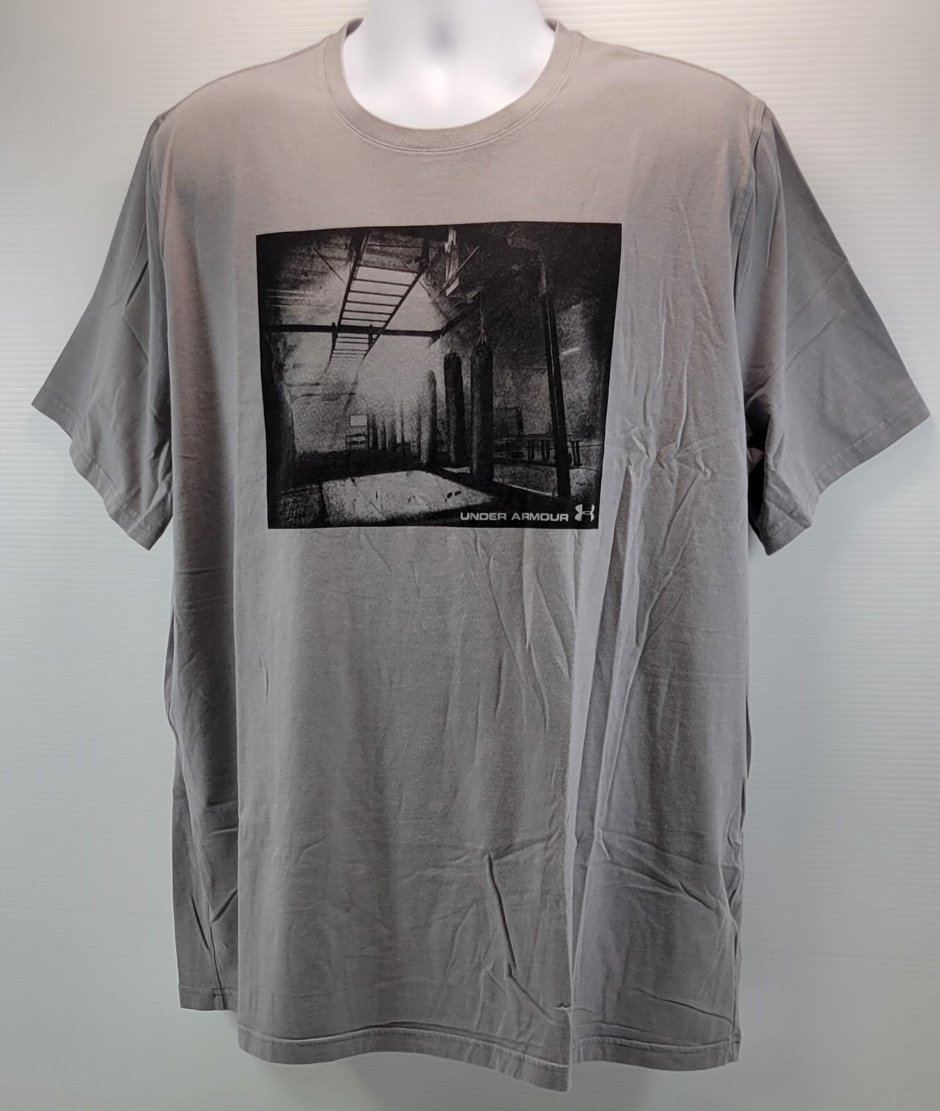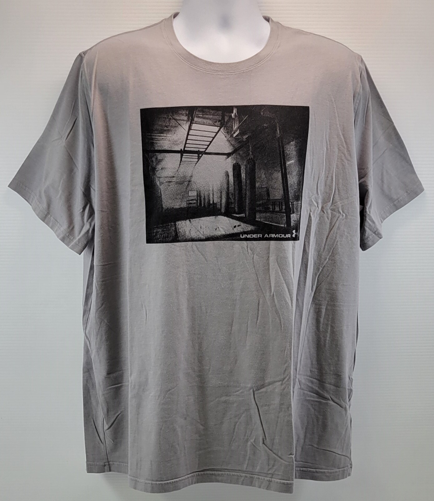 G) Under Armour Men Gray Photoreal Gym Graphic T-Shirt 2XL Loose Fit Heat Gear