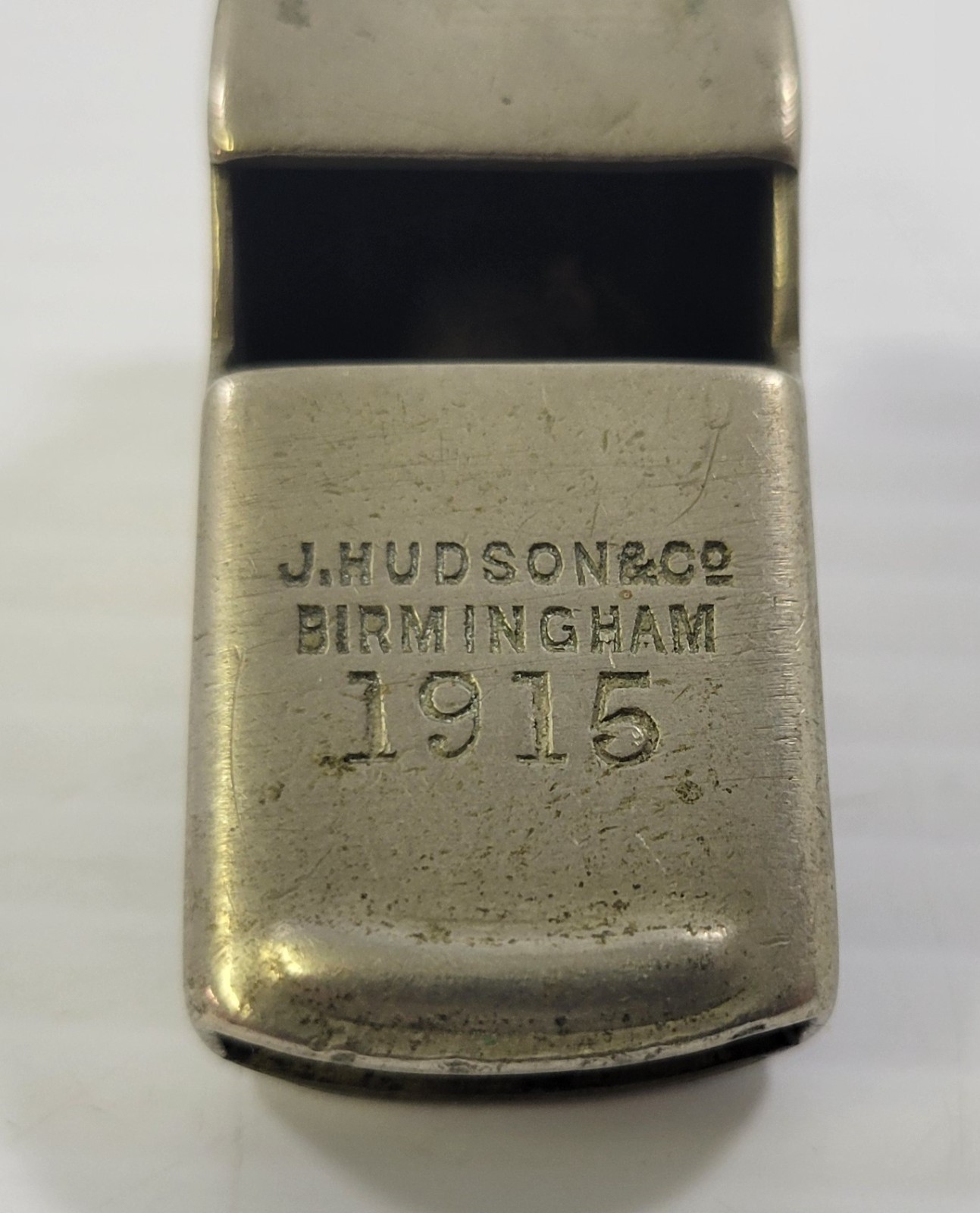 *C54) Antique J. Hudson & Co. Birmingham 1915 Infantry Nickel Silver Whistle