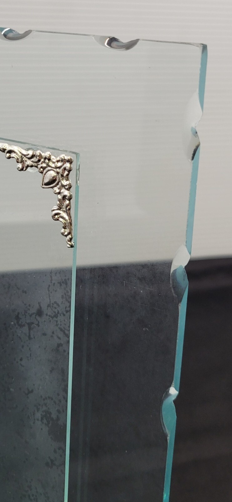 Frame has never actually been used but is a vintage piece that was in basement storage for years. The original box was damaged and NOT included. Glass has some cloudy sections and base appears to have a slight edge chip that blends in with the design of the glass.