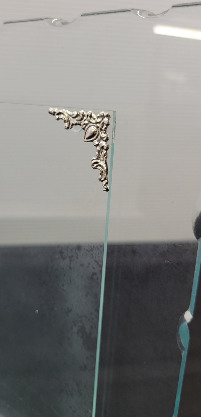 Measures about 9" x 11" in total dimensions with approximate 1/8" thick glass