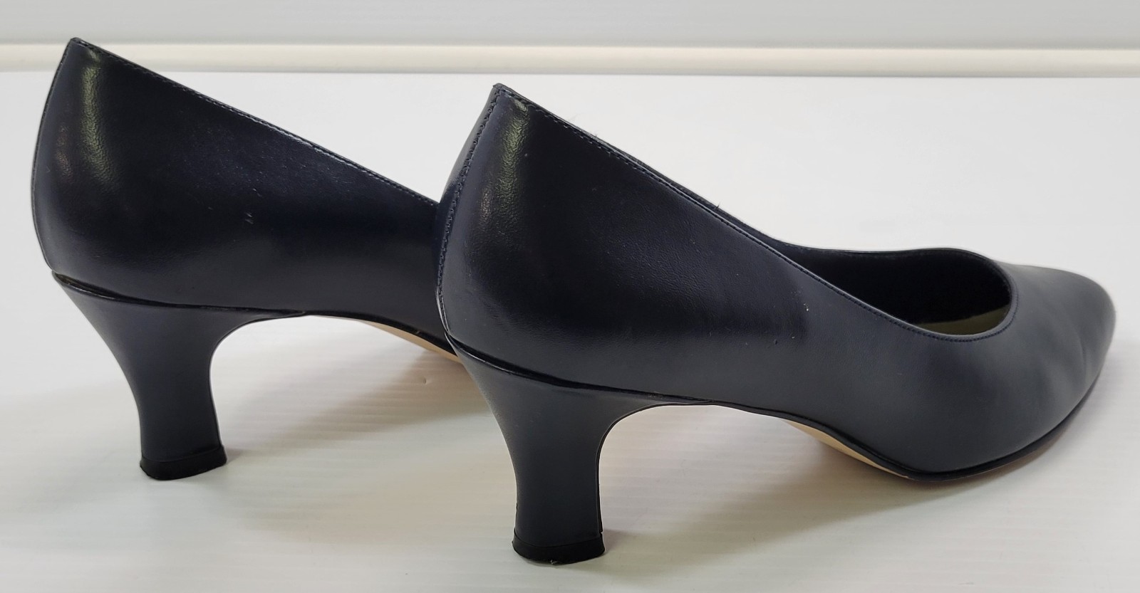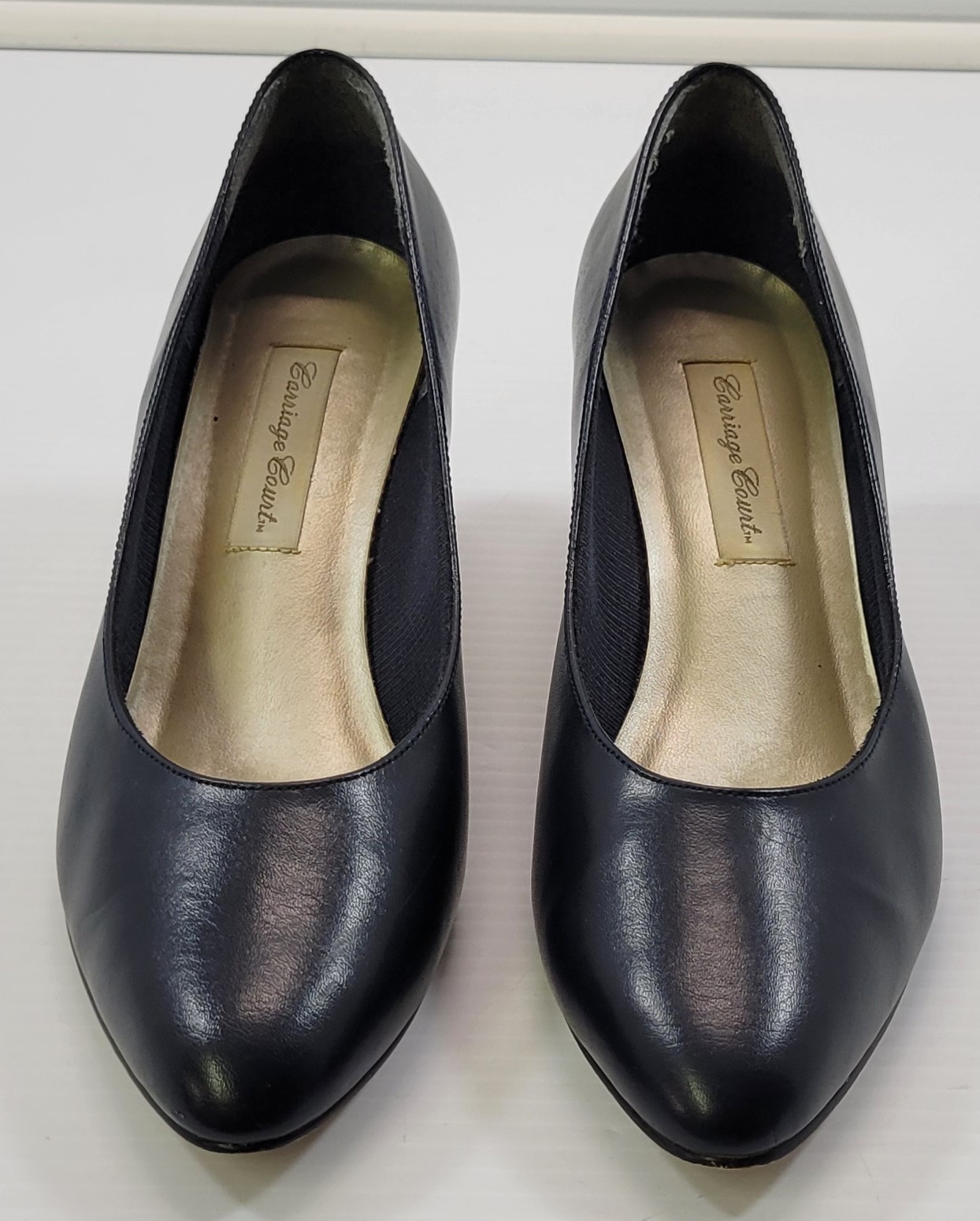 BG) Carriage Court Maxi Woman Navy Blue Heel Shoes Size 8W