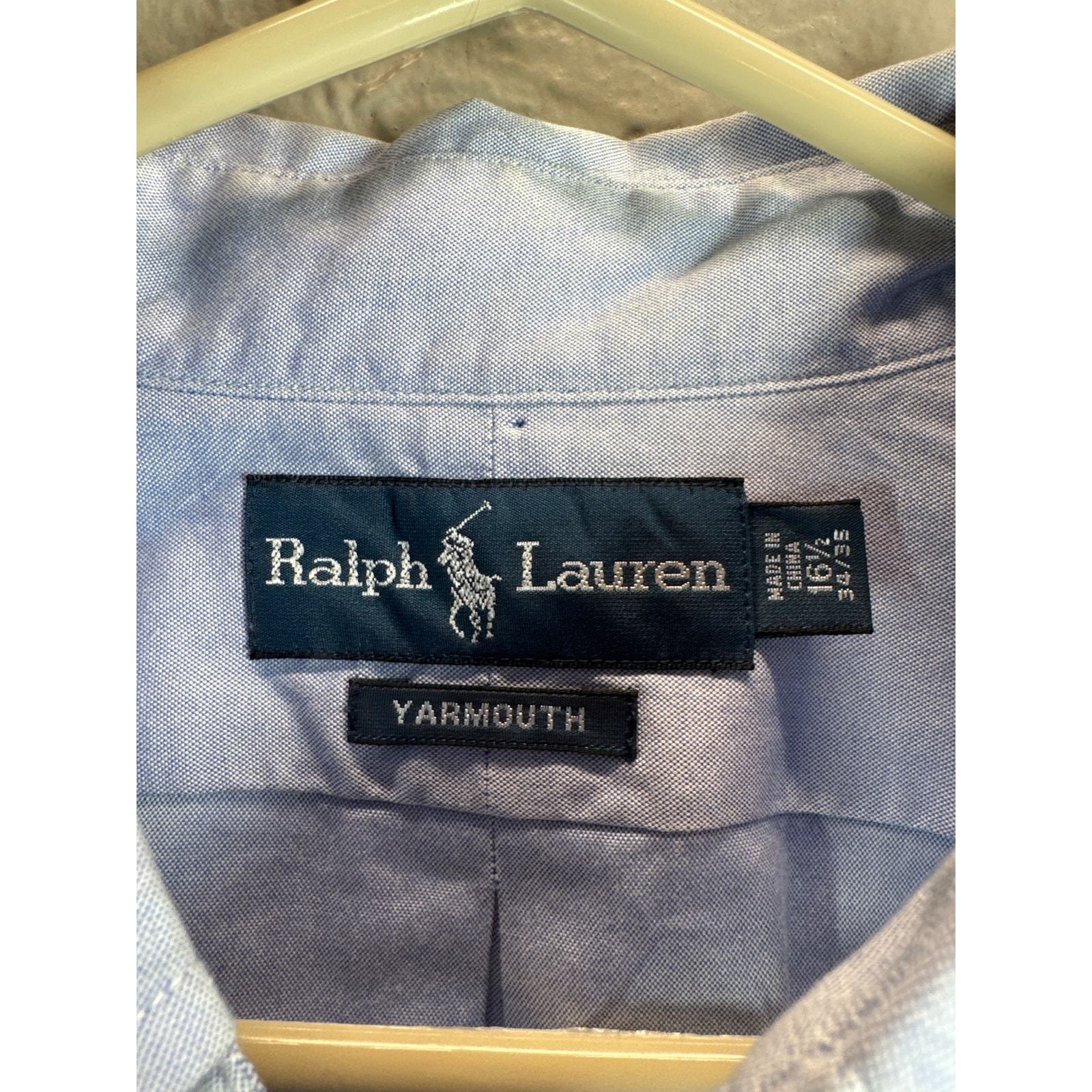 Ralph Lauren Mens Blue Yarmouth Button Down Dress Shirt Preppy Size 16 1/2 34-35