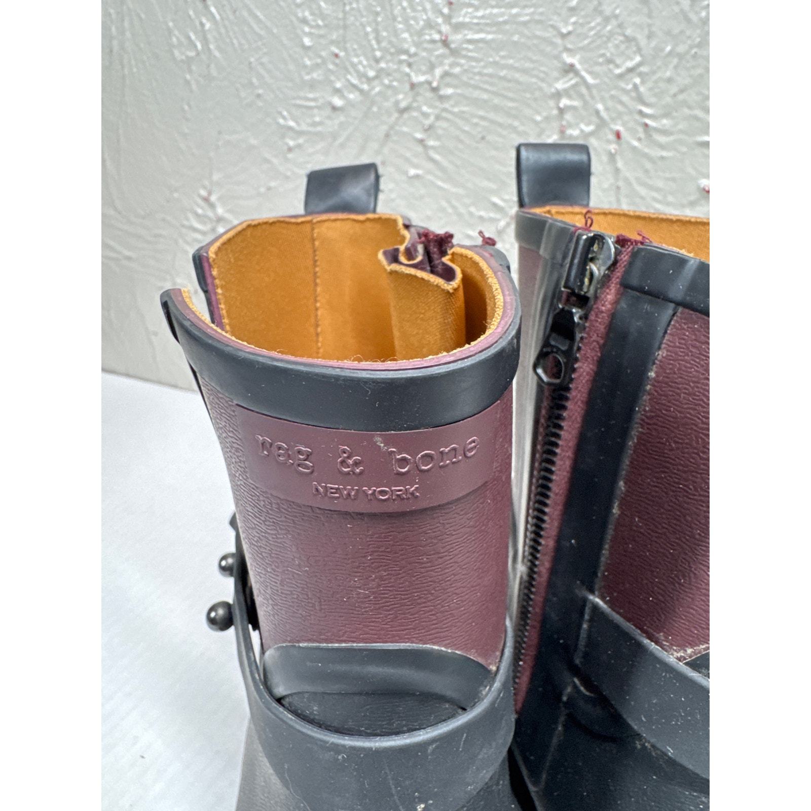 Rag and Bone Moto Rain Boots Women's Black Maroon Waterproof Size 37 US 7