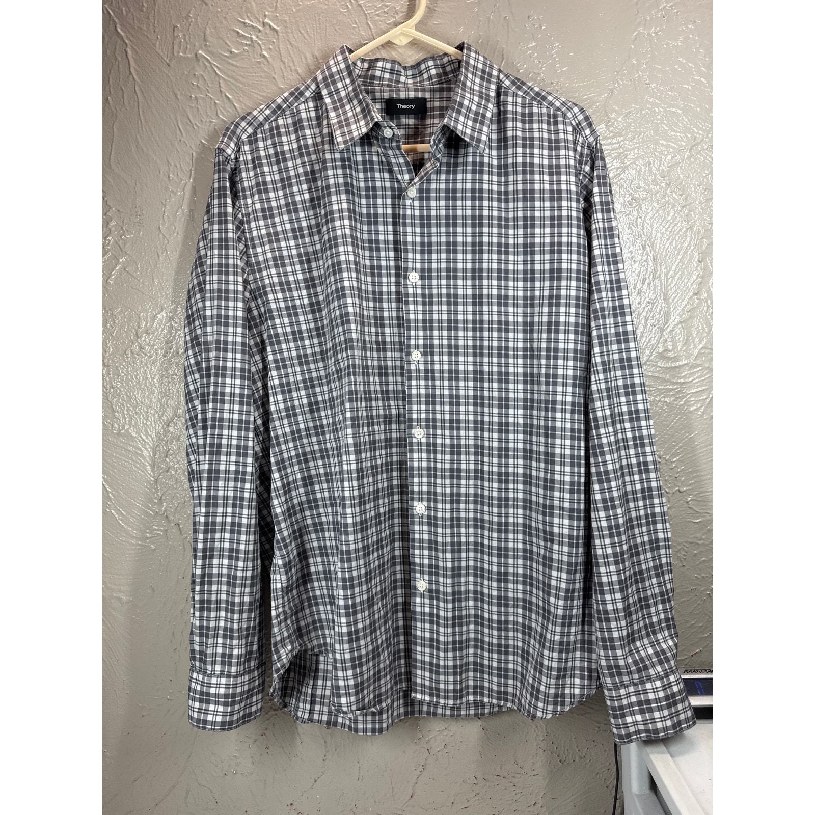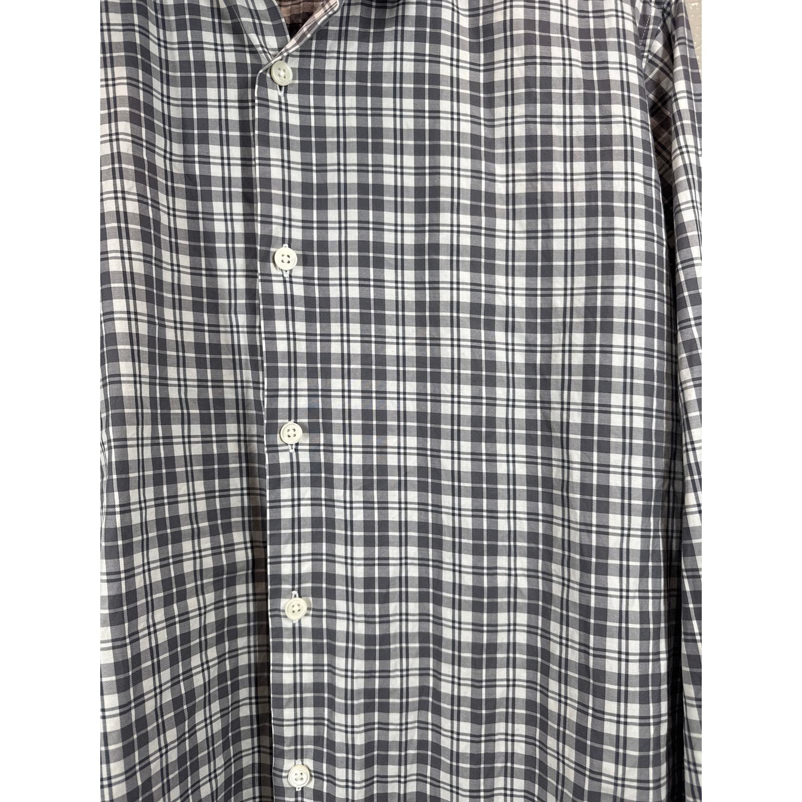 Theory Shirt Mens Dark Gray Plaid Sylvain Skader Dress Button Up Size XL