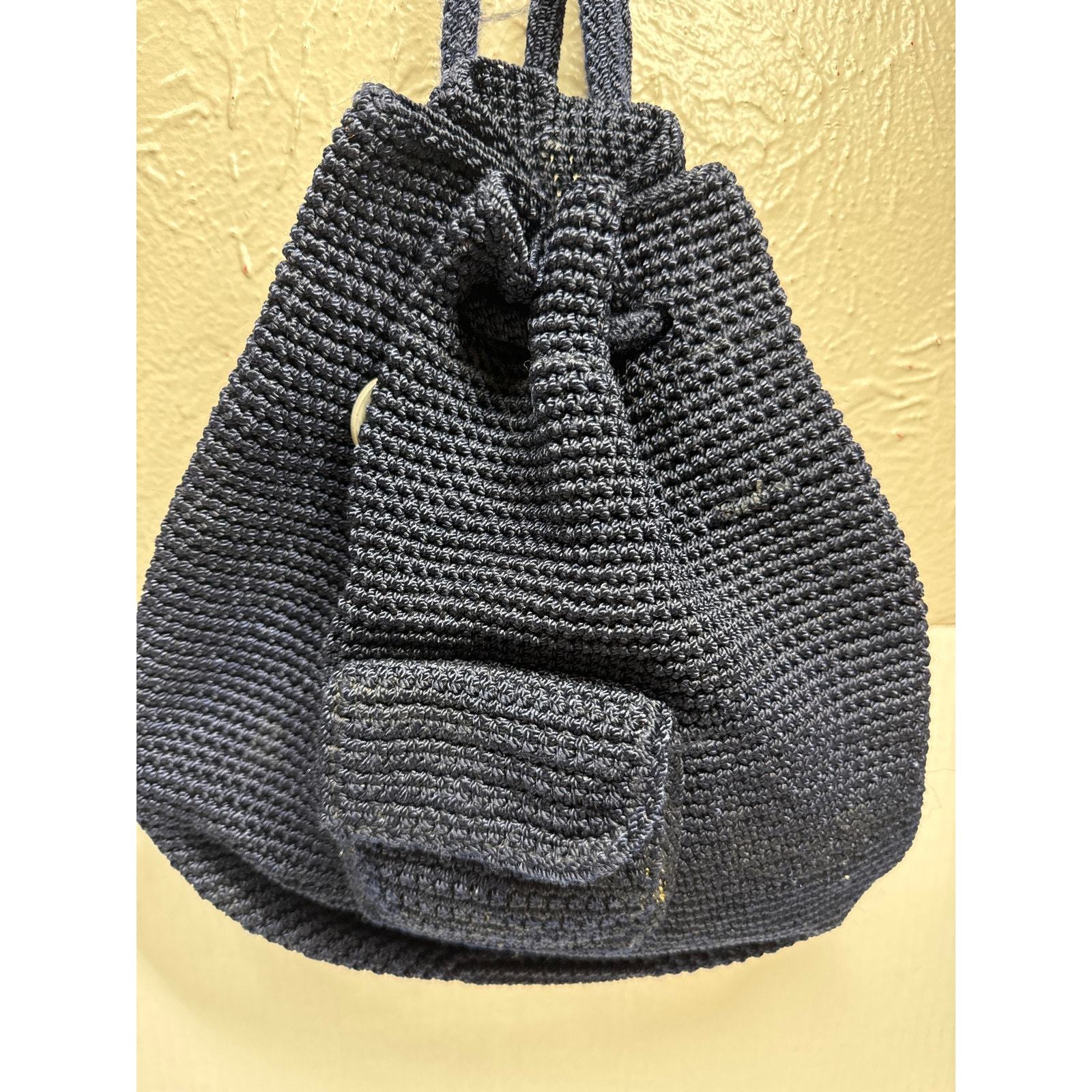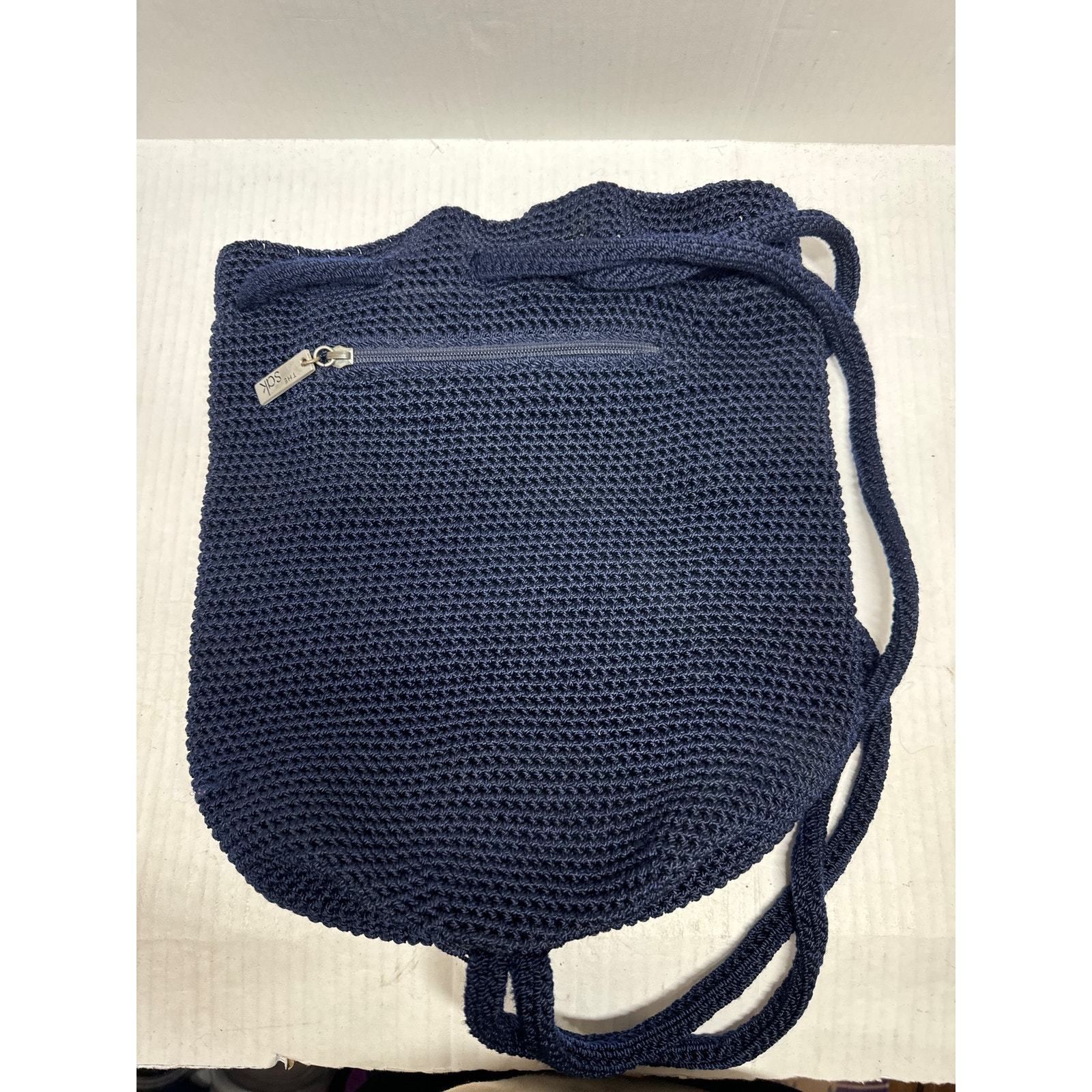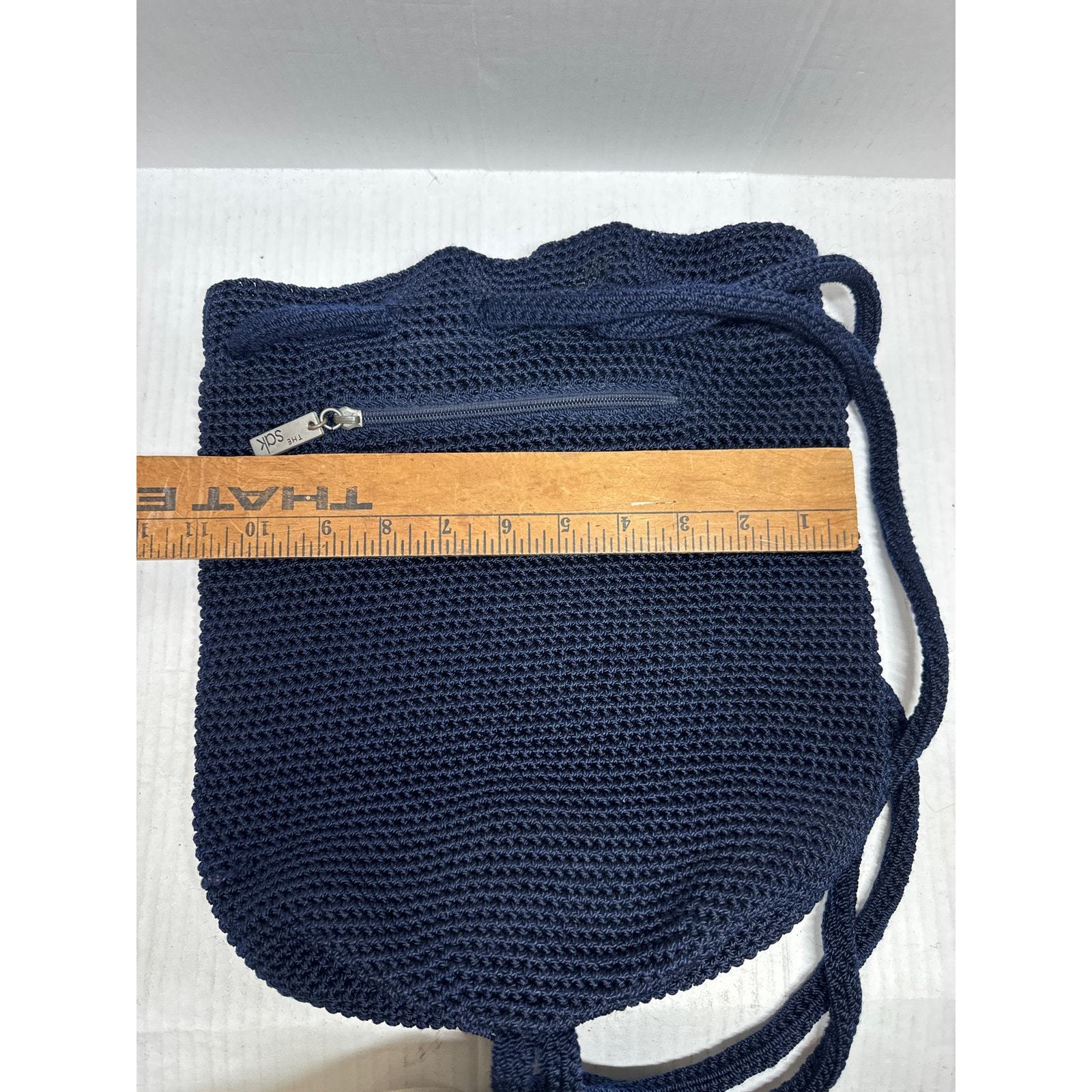 The Sak Drawstring Crochet Backpack Purse W/Small Cargo Pocket Navy Blue