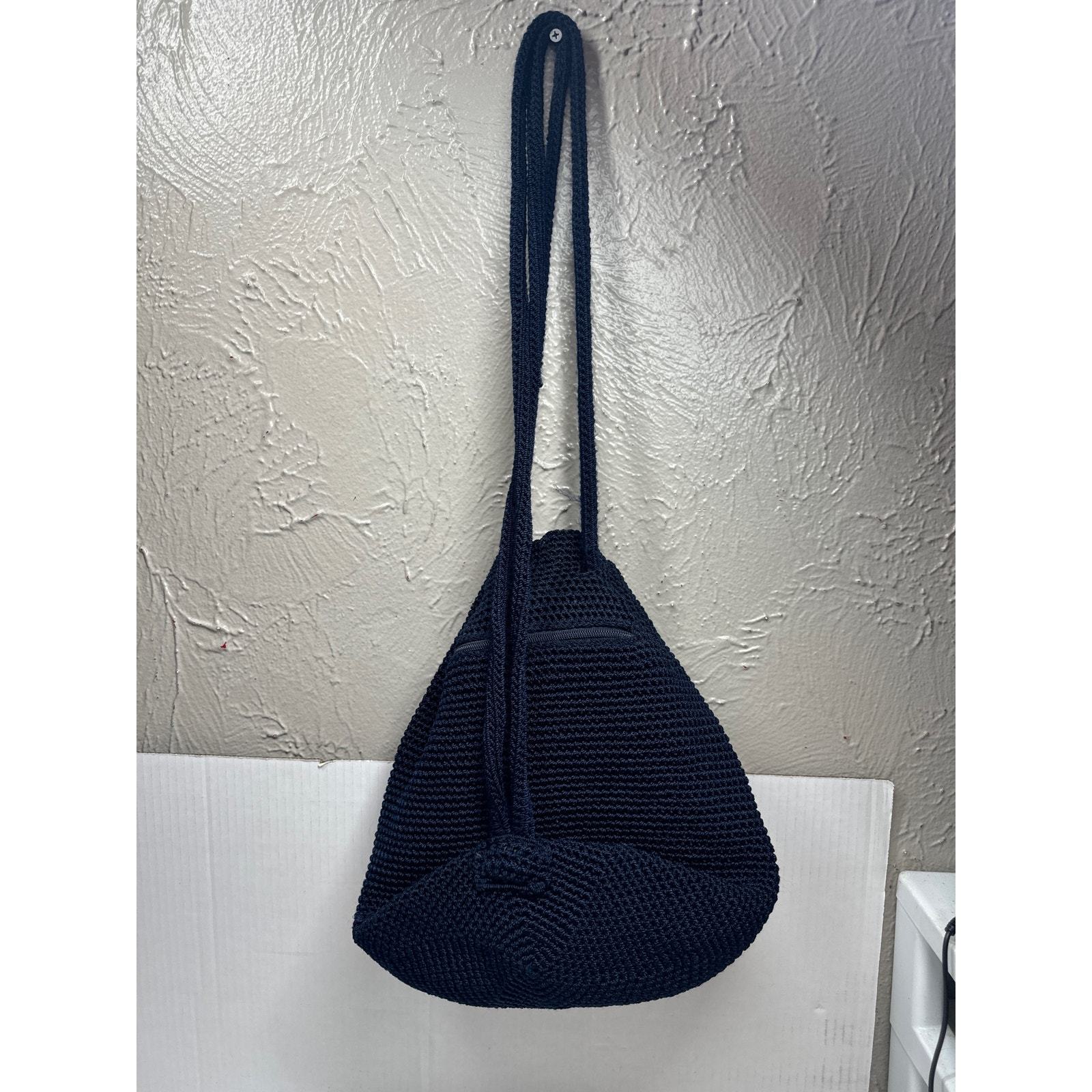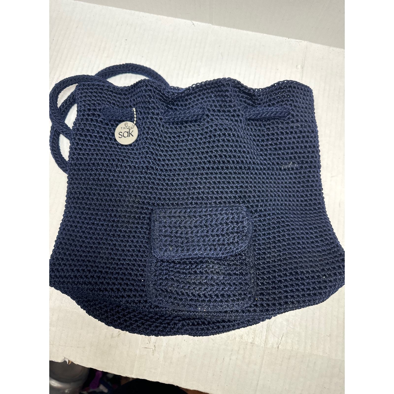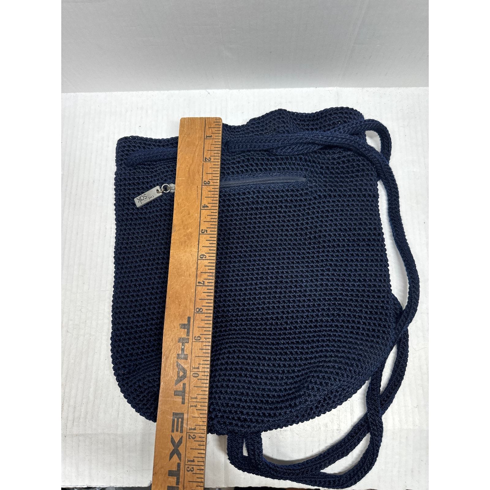 The Sak Drawstring Crochet Backpack Purse W/Small Cargo Pocket Navy Blue