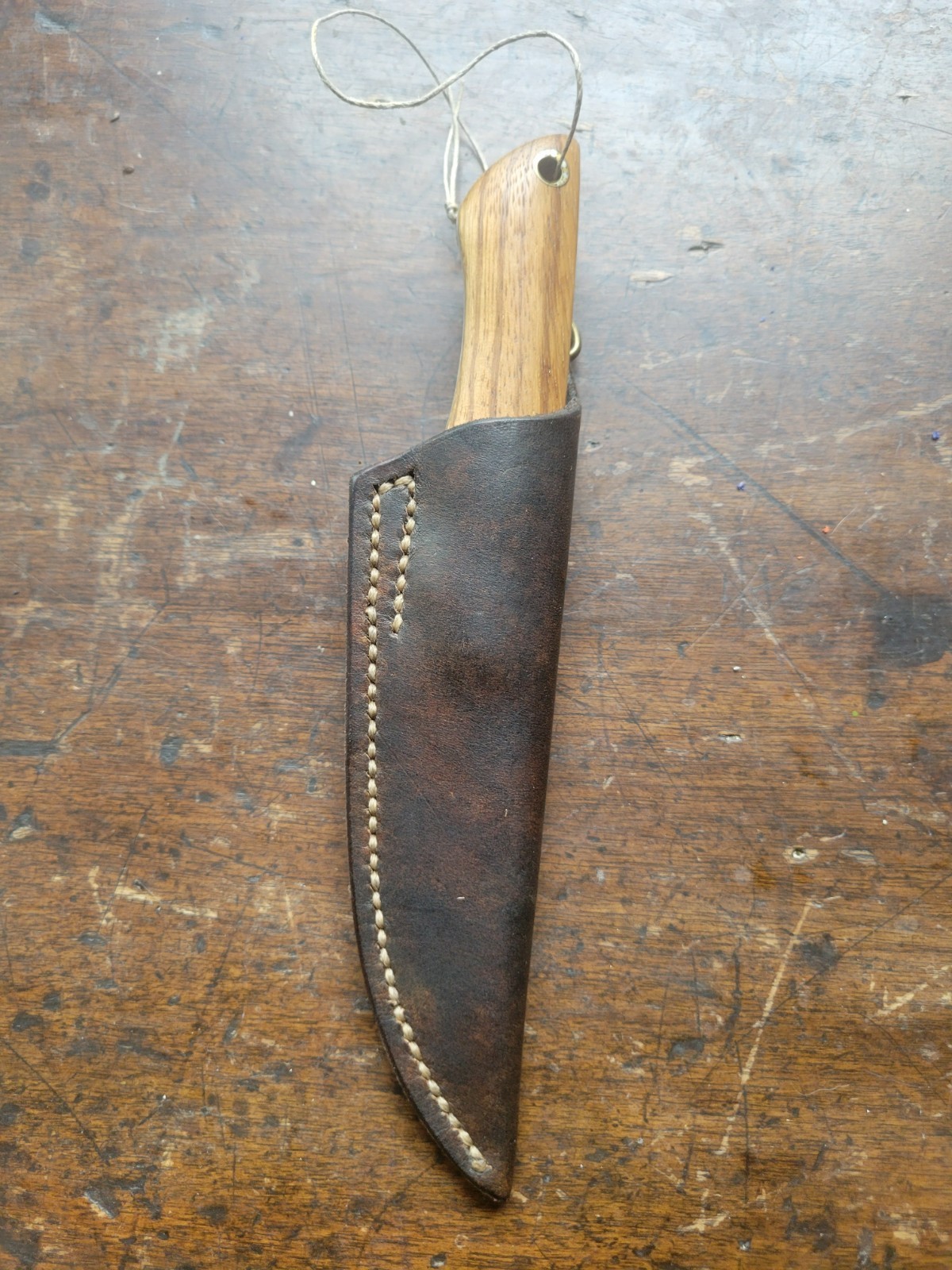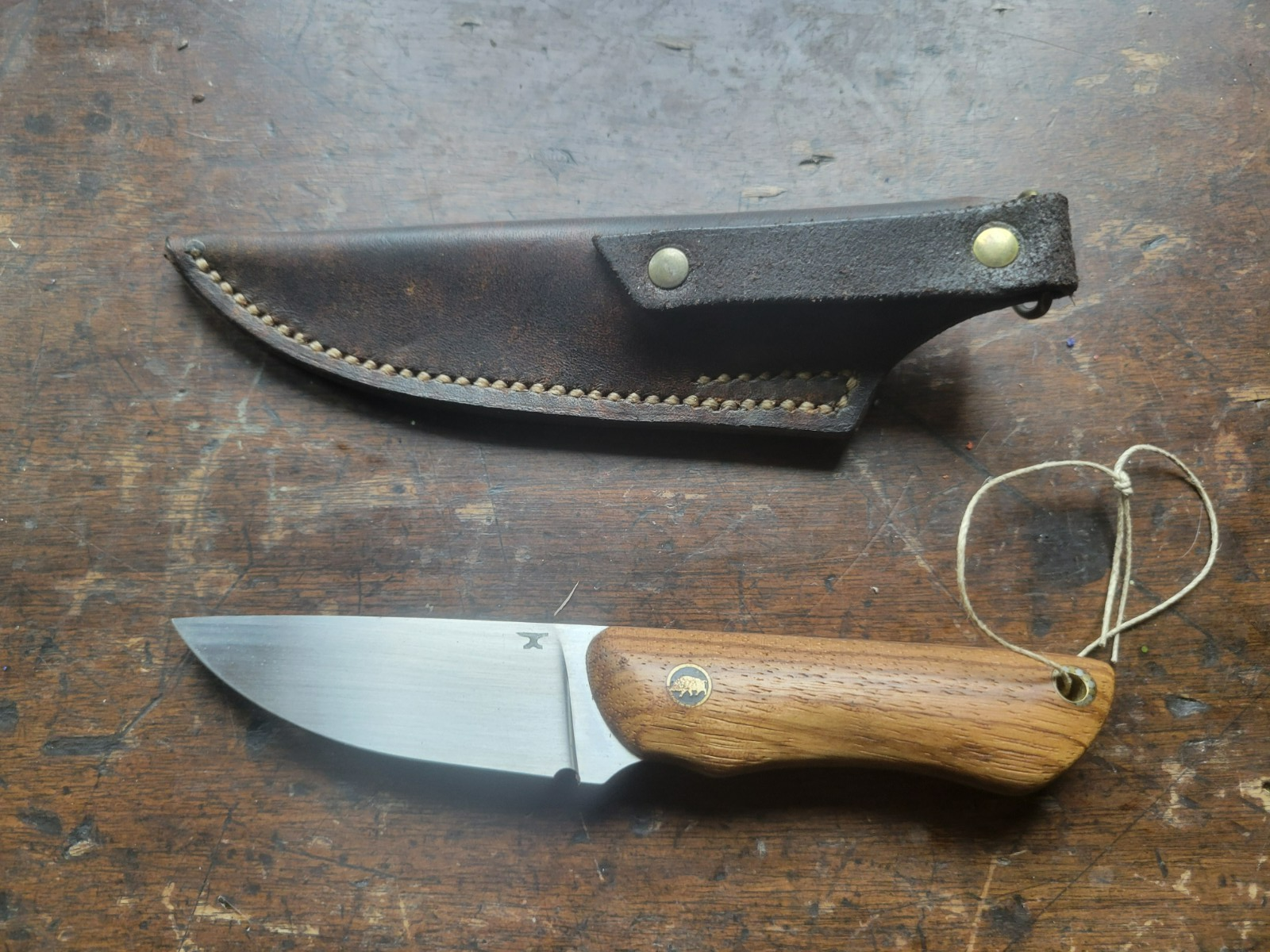 7" Damascus Steel Hunting Skinning Knife Wood Handle With Leather Sheath