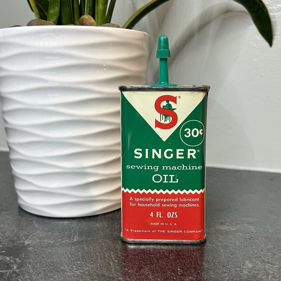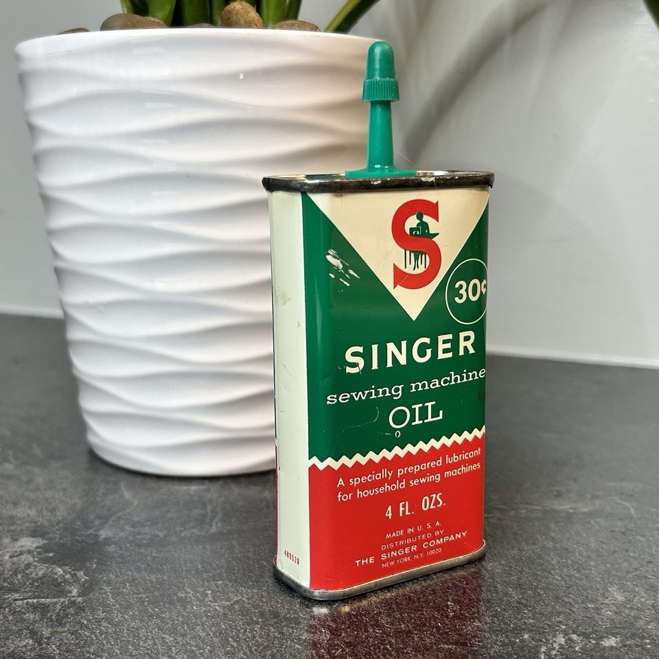 Vintage SINGER SEWING MACHINE OIL Tin Can 4 oz Advertising Almost Full