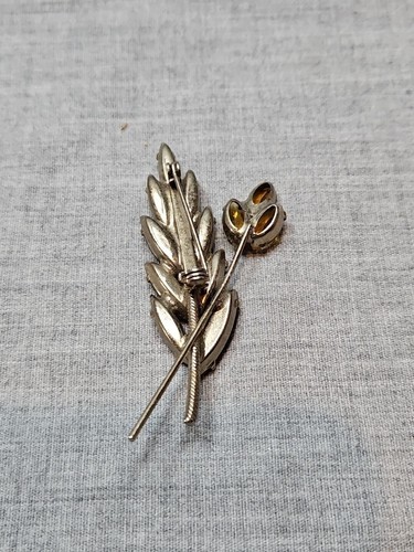 Amber Tone Leaf/Wheat/Crop Design 3D Pin Brooch 2.5'', Vintage