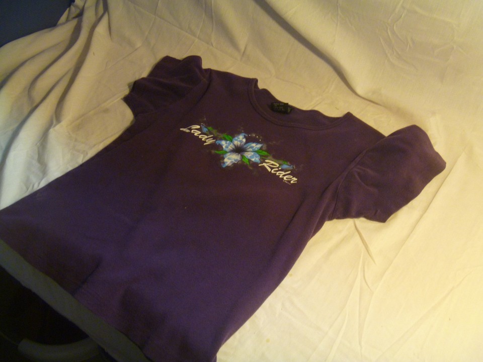 WOMENS MOTORCYCLE LIGHTNING CLOTHING BIKE RALLY KAUAI HAWAII SHIRT PURPLE XL