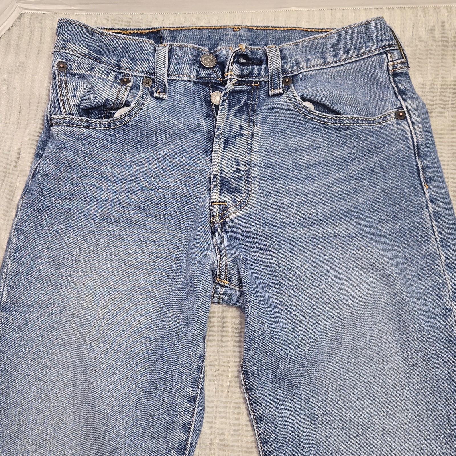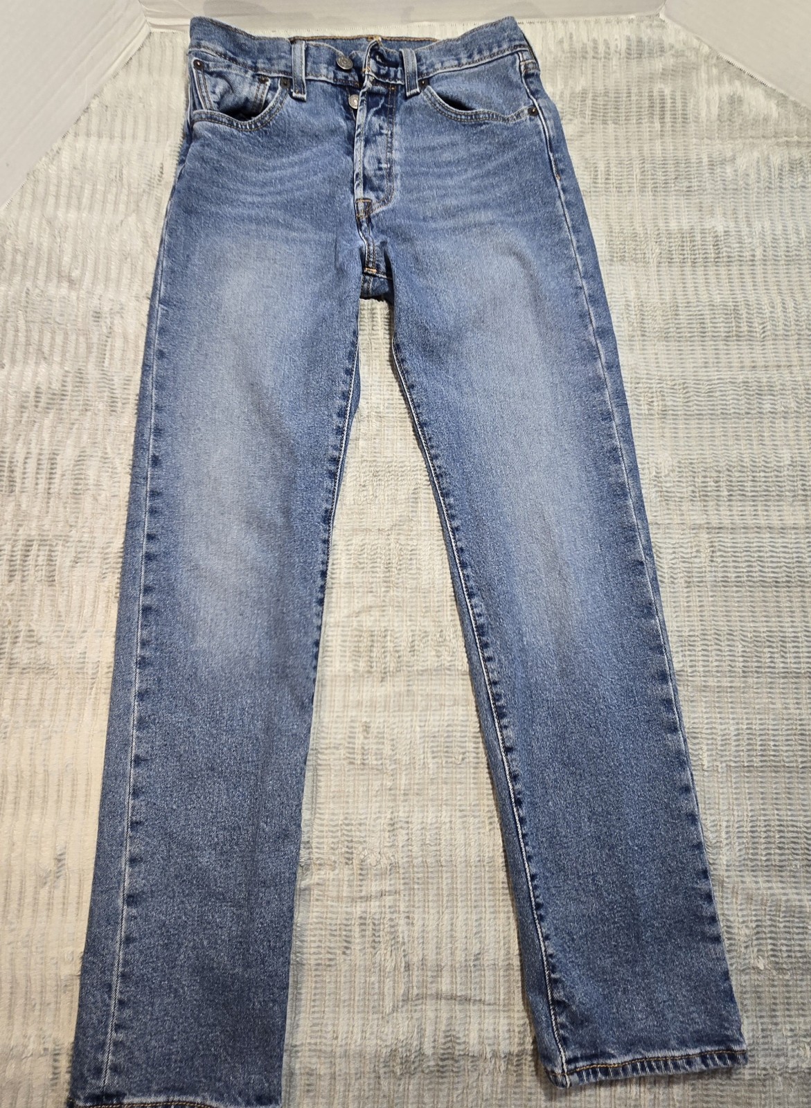 Levis Jeans Blue Straight Leg Button Fly Casual Denim Distressed Womens 28 x 33