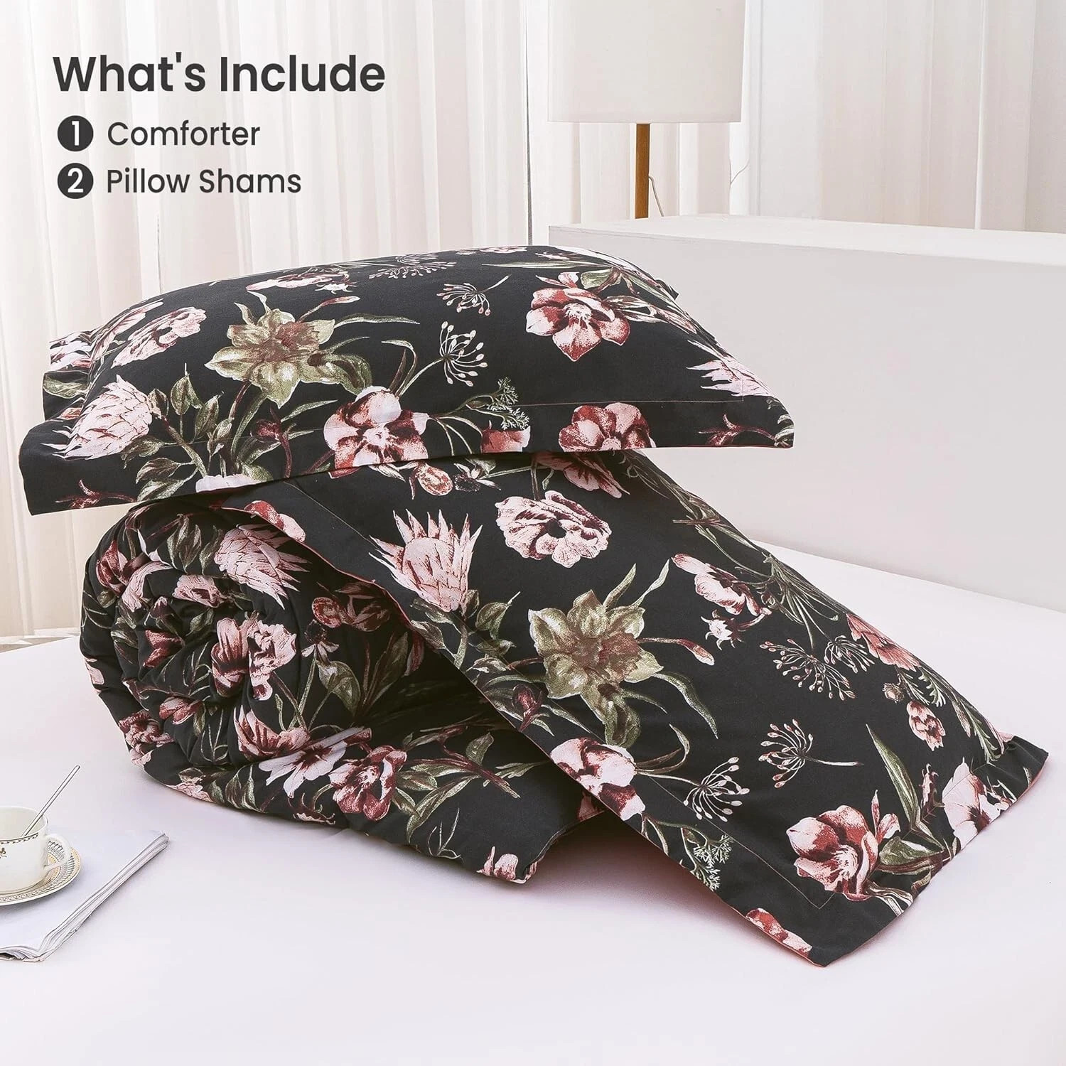 Unique Botanical Pattern Design: Featuring a black and pink vintage botanical flower pattern print, this reversible comforter adds a touch of nature and charm to any bedroom decor. The print is fade - resistant, maintaining its vivid colors and fine details even after years of use.