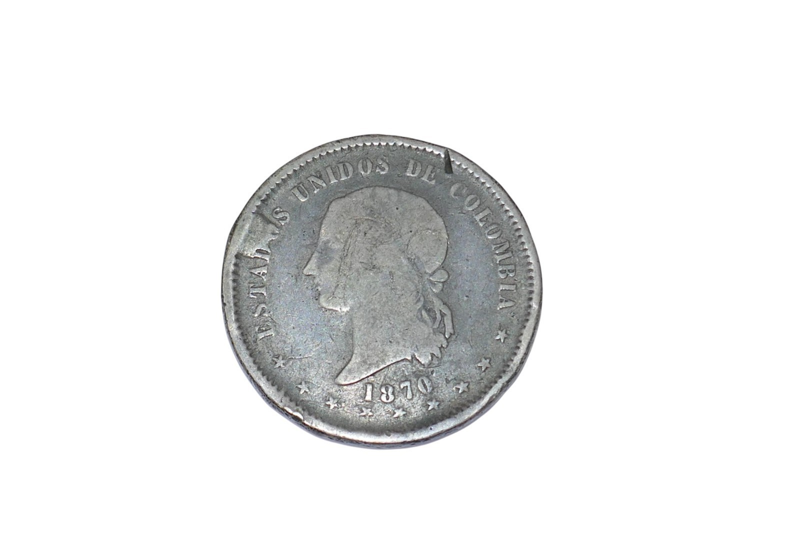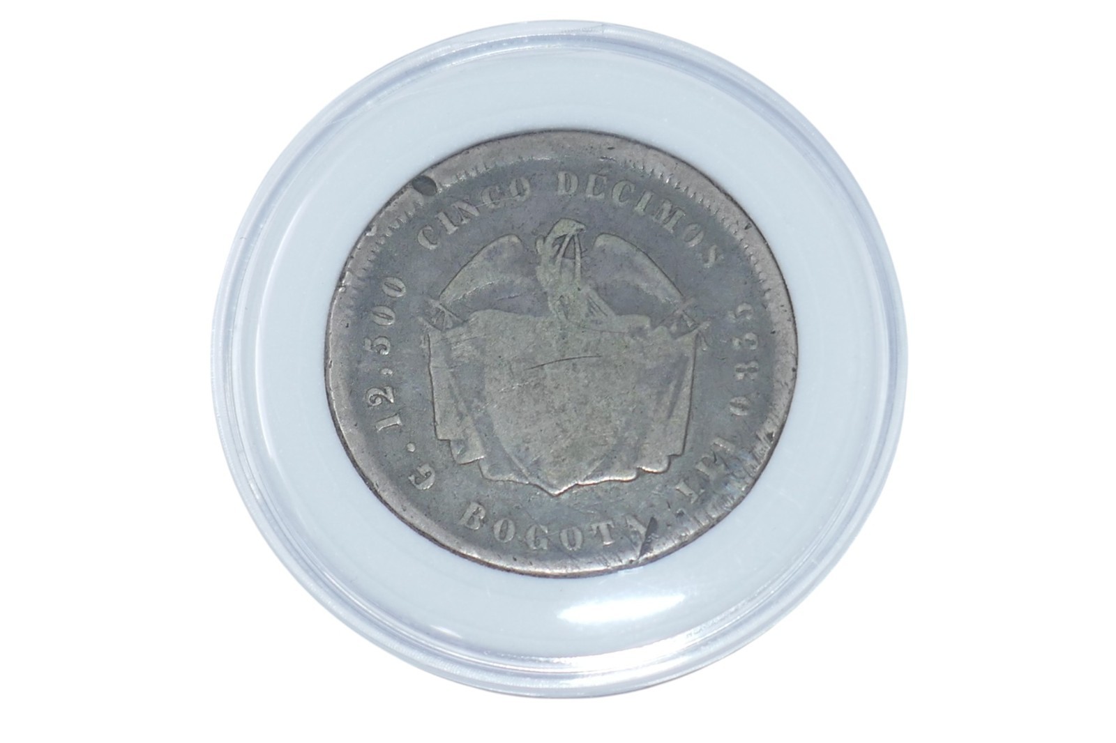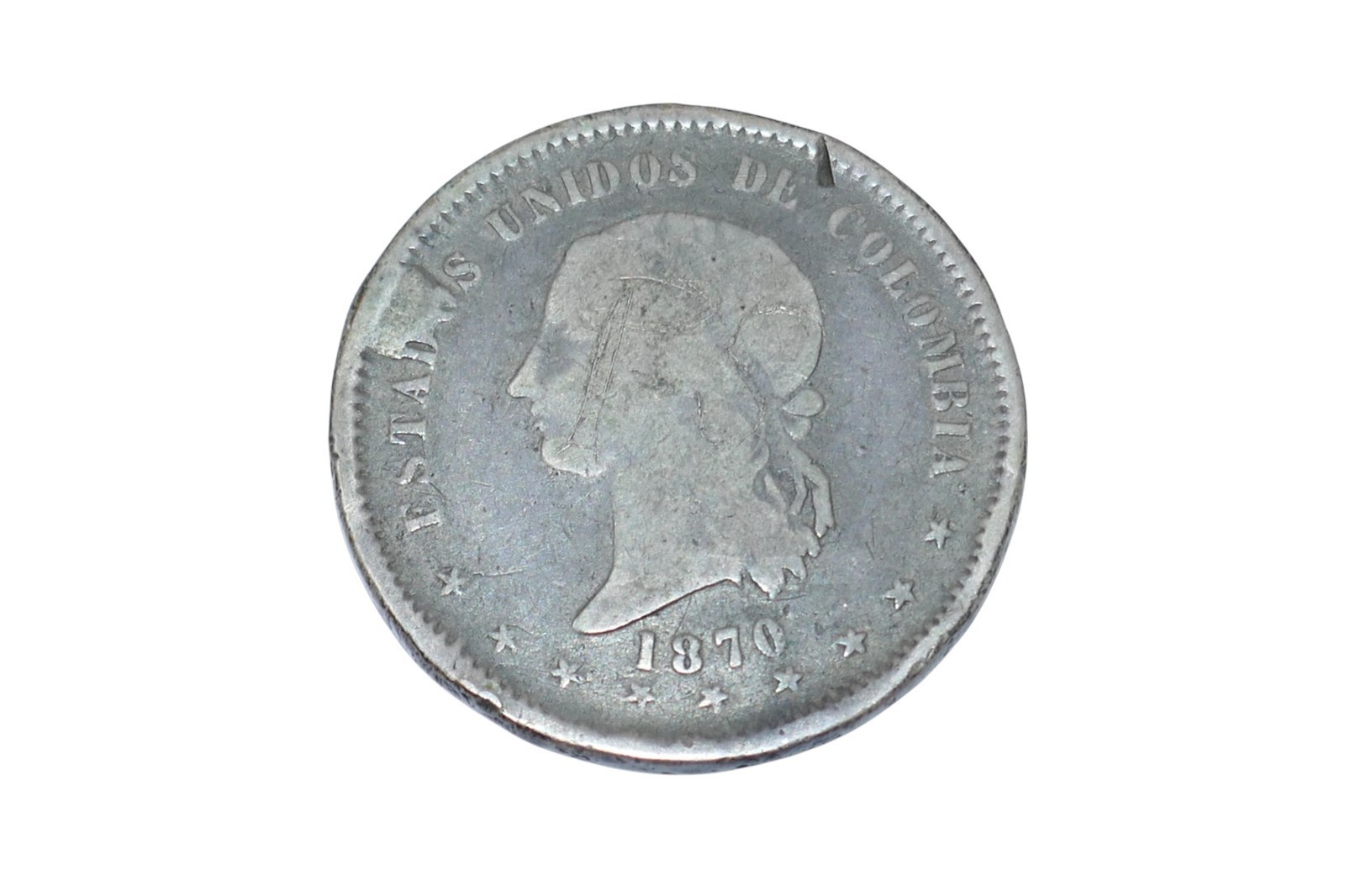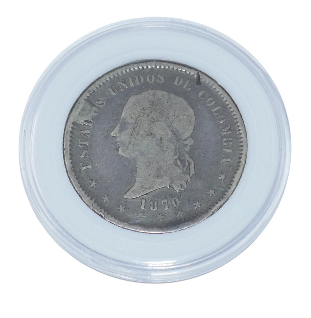 Colombia 1870 Bogata 5 Decimos Silver Coin