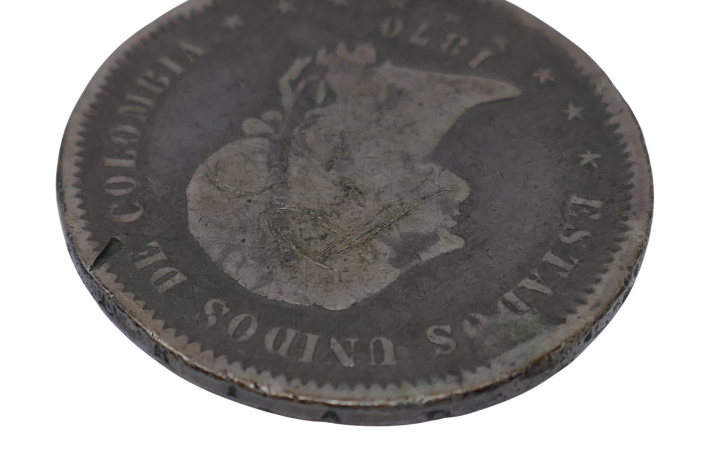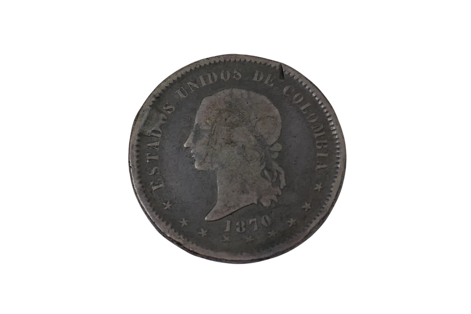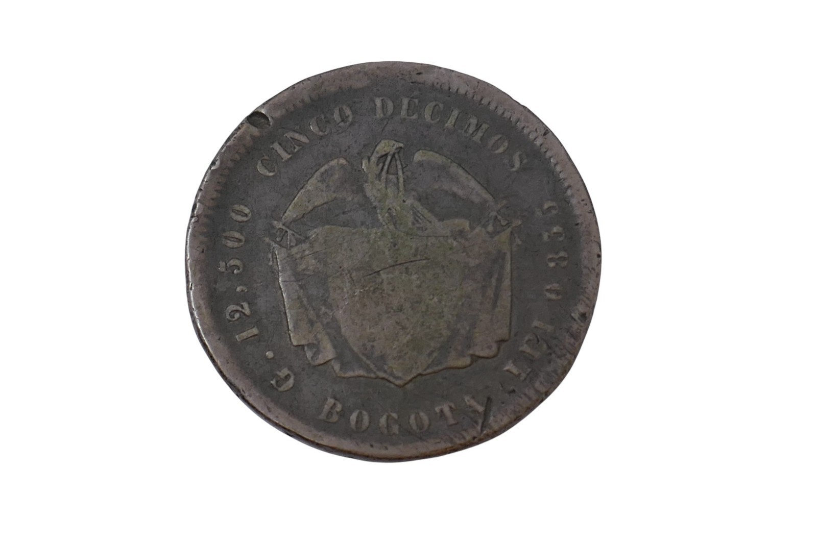 Colombia 1870 Bogata 5 Decimos Silver Coin