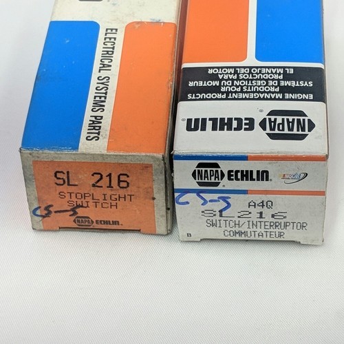 With a manufacturer part number of SL216 and vintage part status, this switch assembly is a reliable choice for your car or truck. The switch is compatible with various interchange part numbers, including S643, EG1205, 3D8, SW2238, and EG1088, and is an OE/OEM part number for E6LB13480AA, E0LY13480A, E0TB13480BA, E0TB13480AA, and E9LB13480AA. Trust in the quality of this Napa Echlin switch assembly for your vehicle's brake light control.