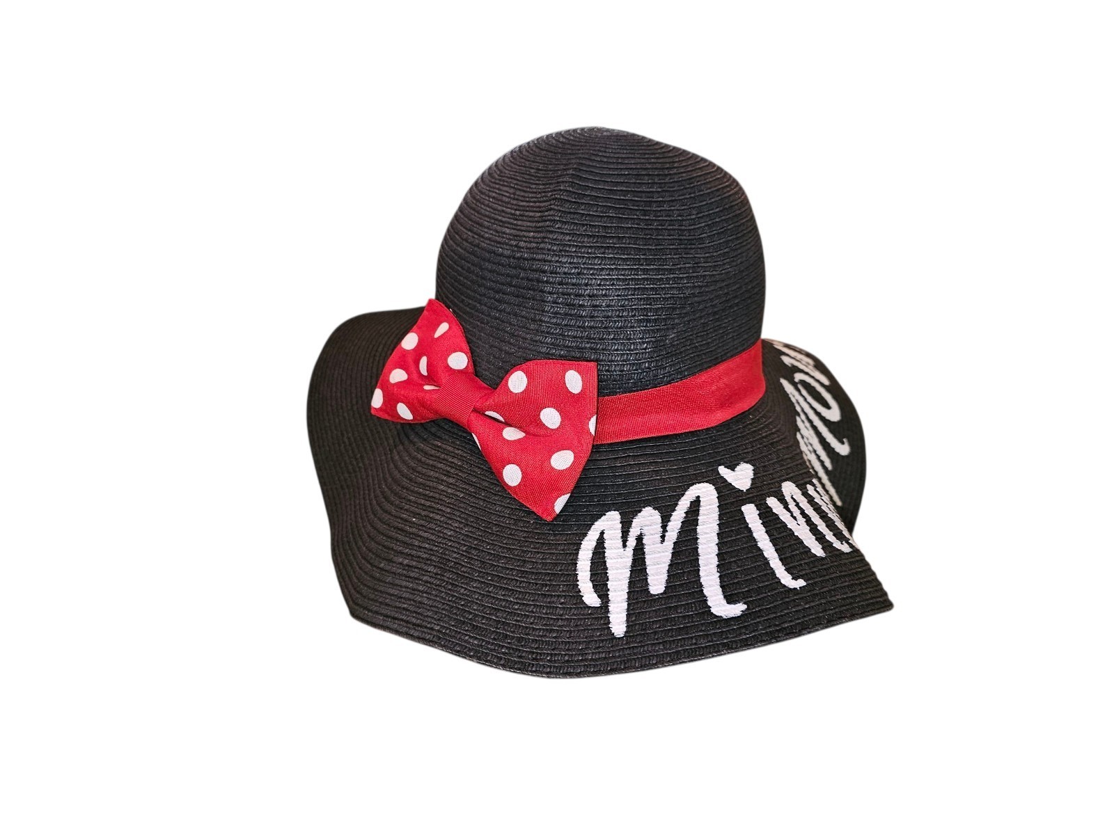 Disney Minnie Mouse Floppy Straw Hat - Pre-Owned Condition -Black/Red/White
