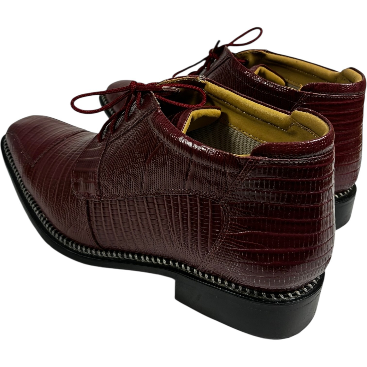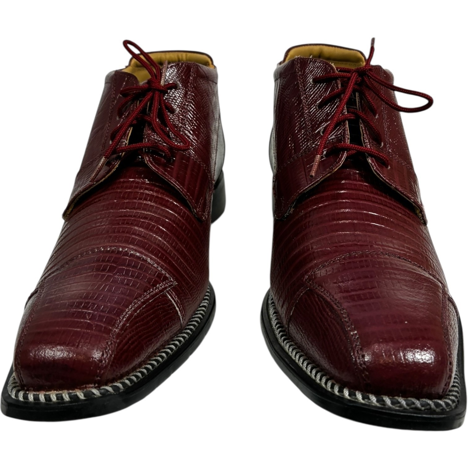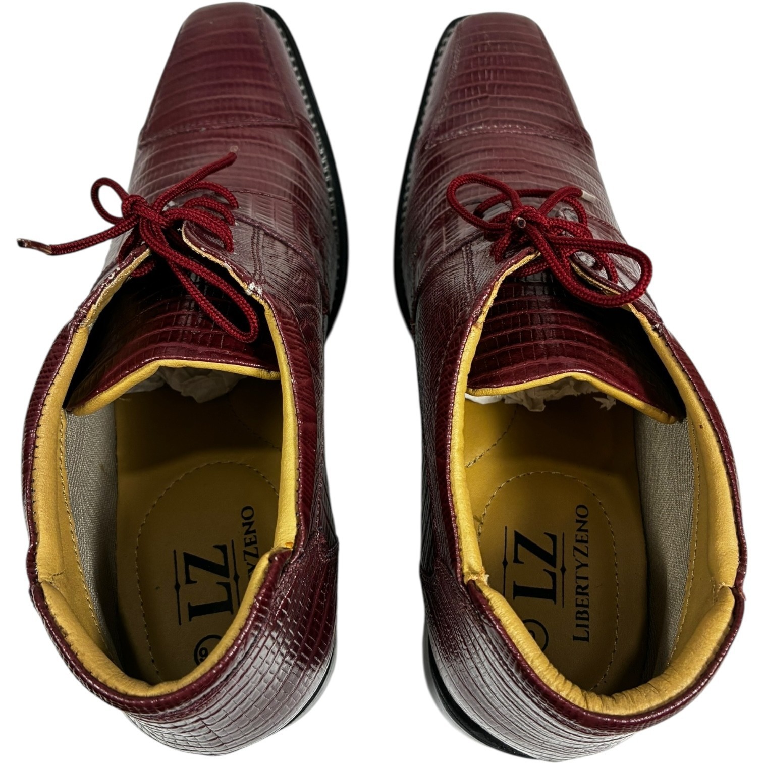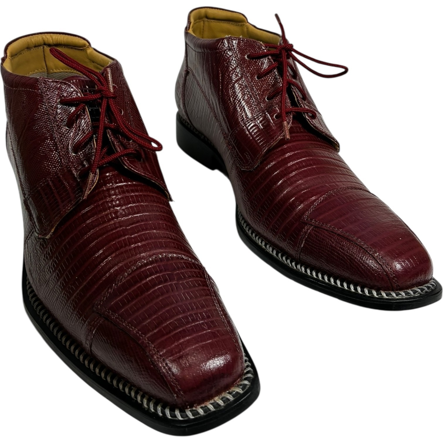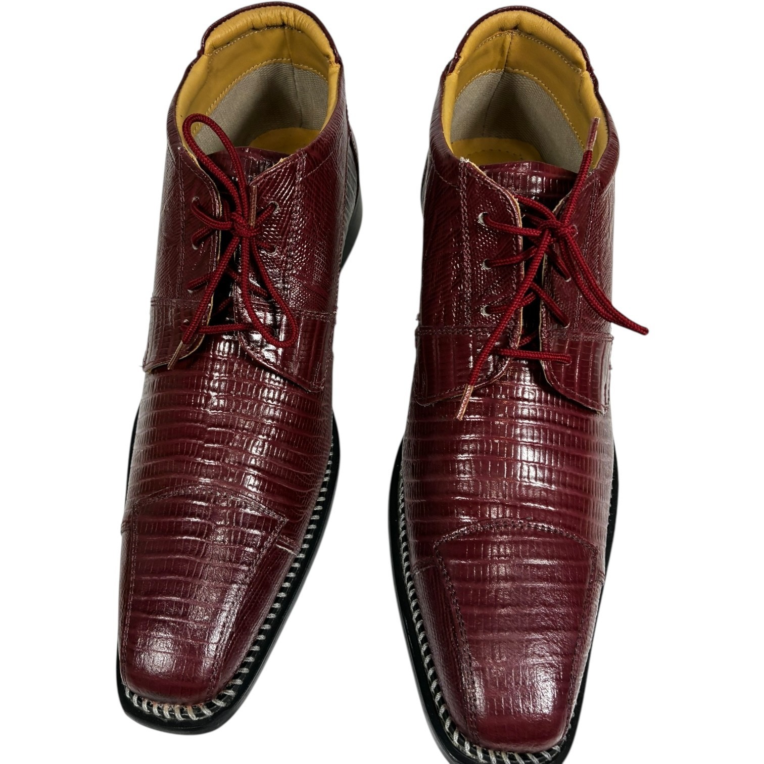 LibertyZeno mens Foxx Burgundy Leather Lizard Print Lace-up Ankle Boots size 9.5