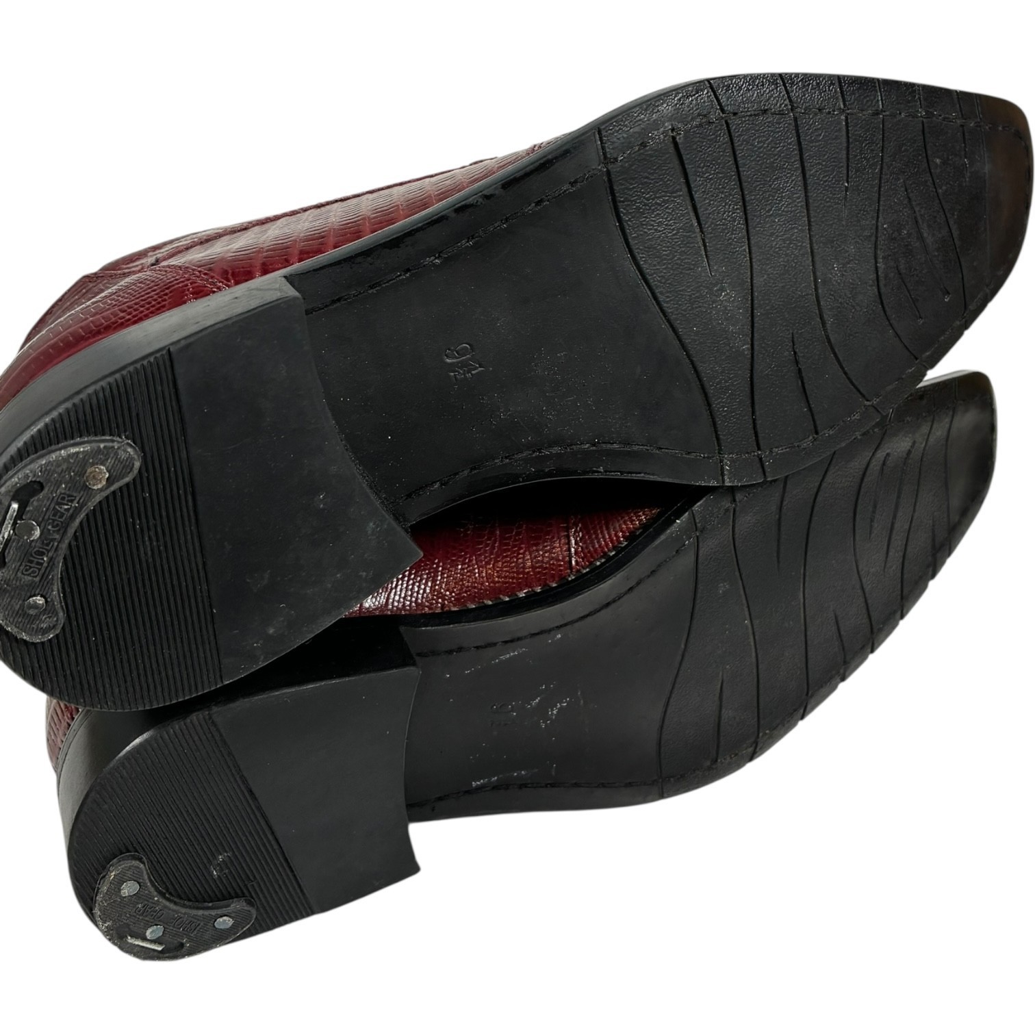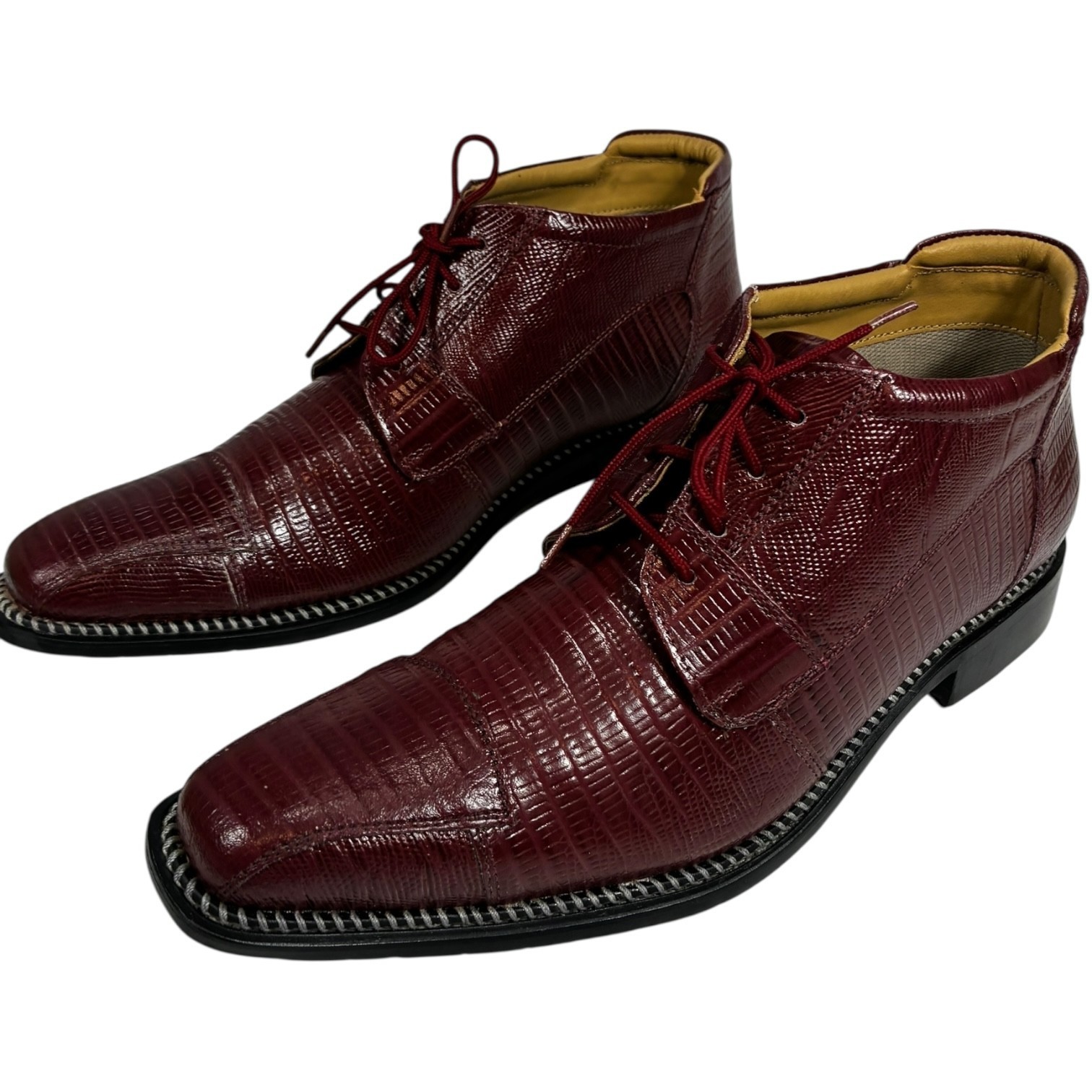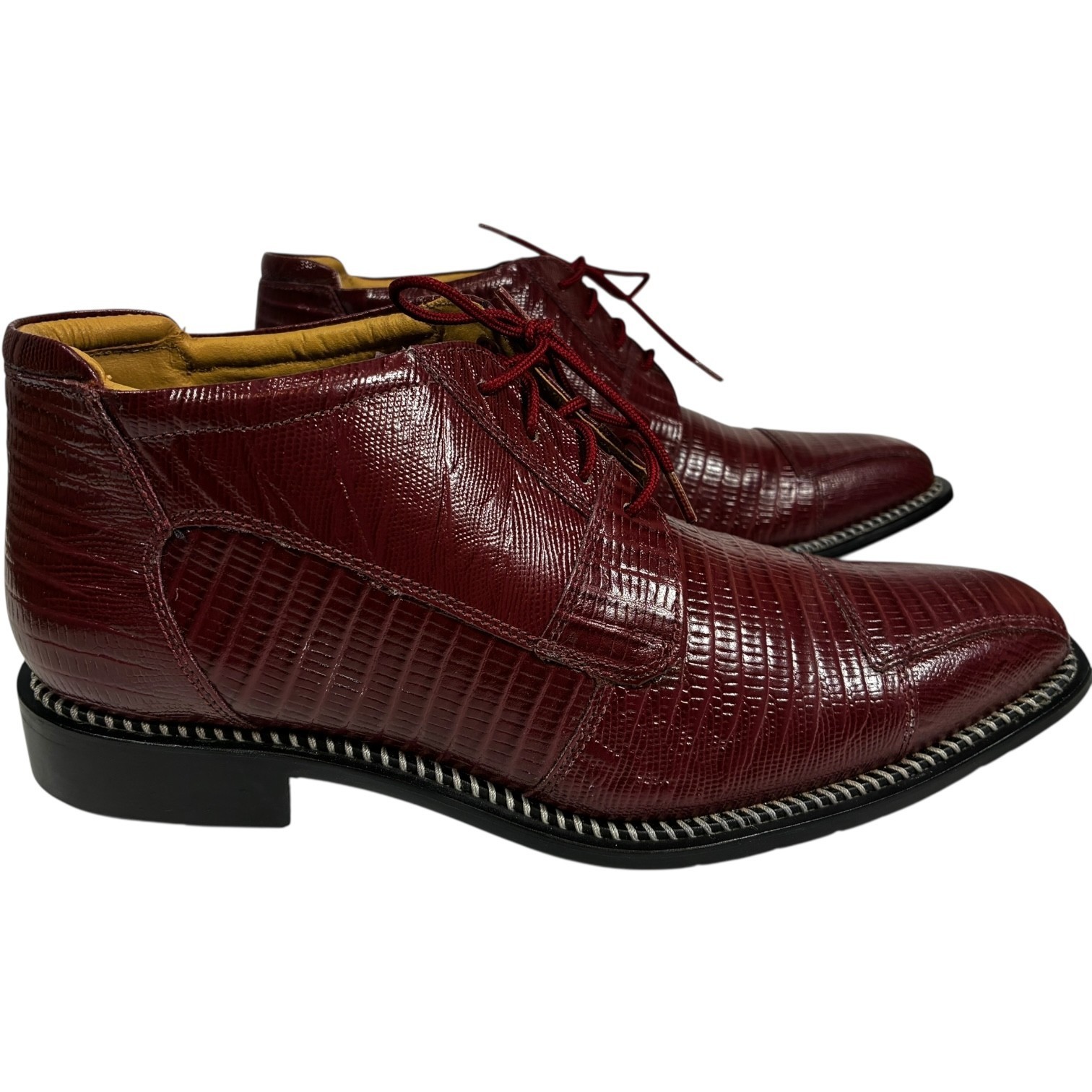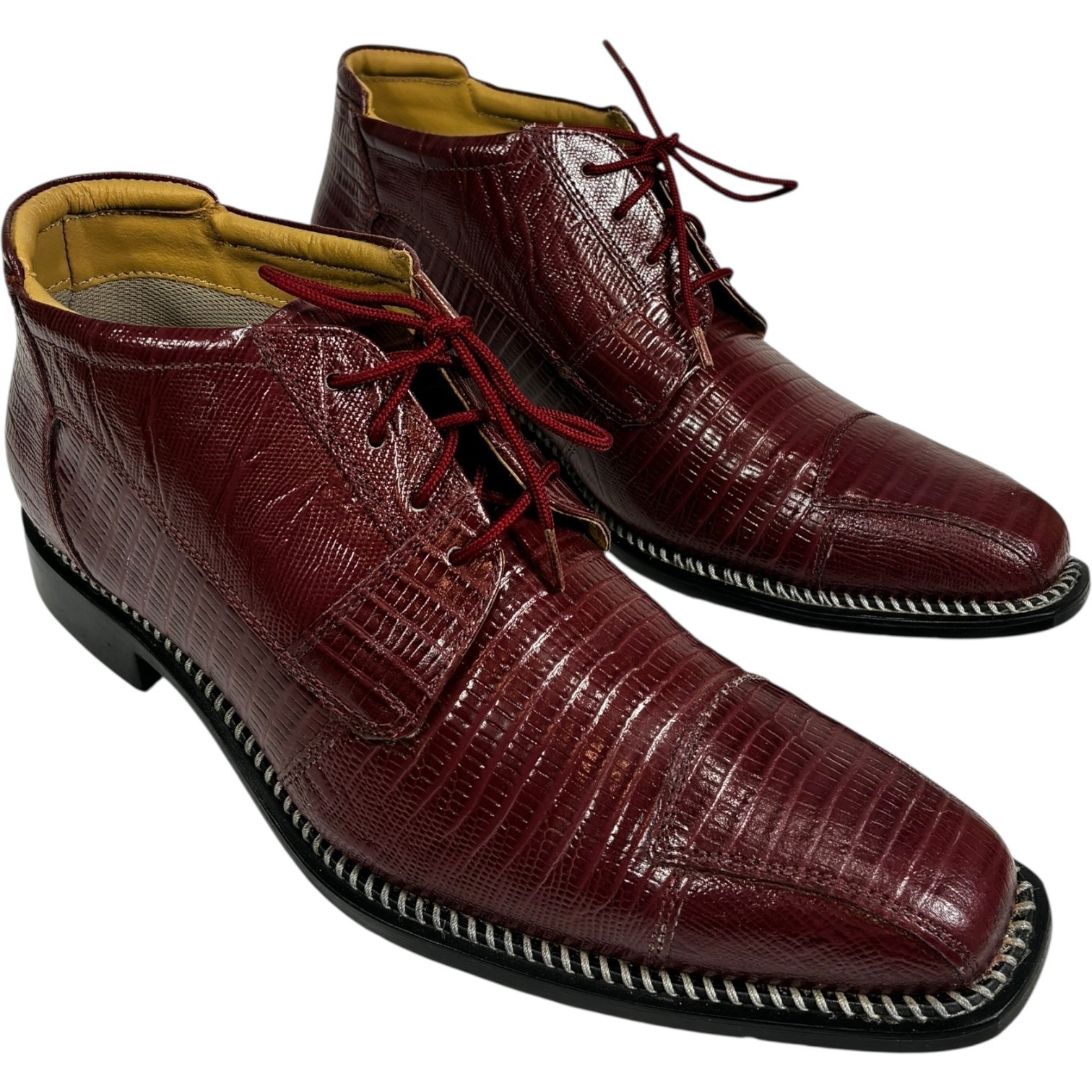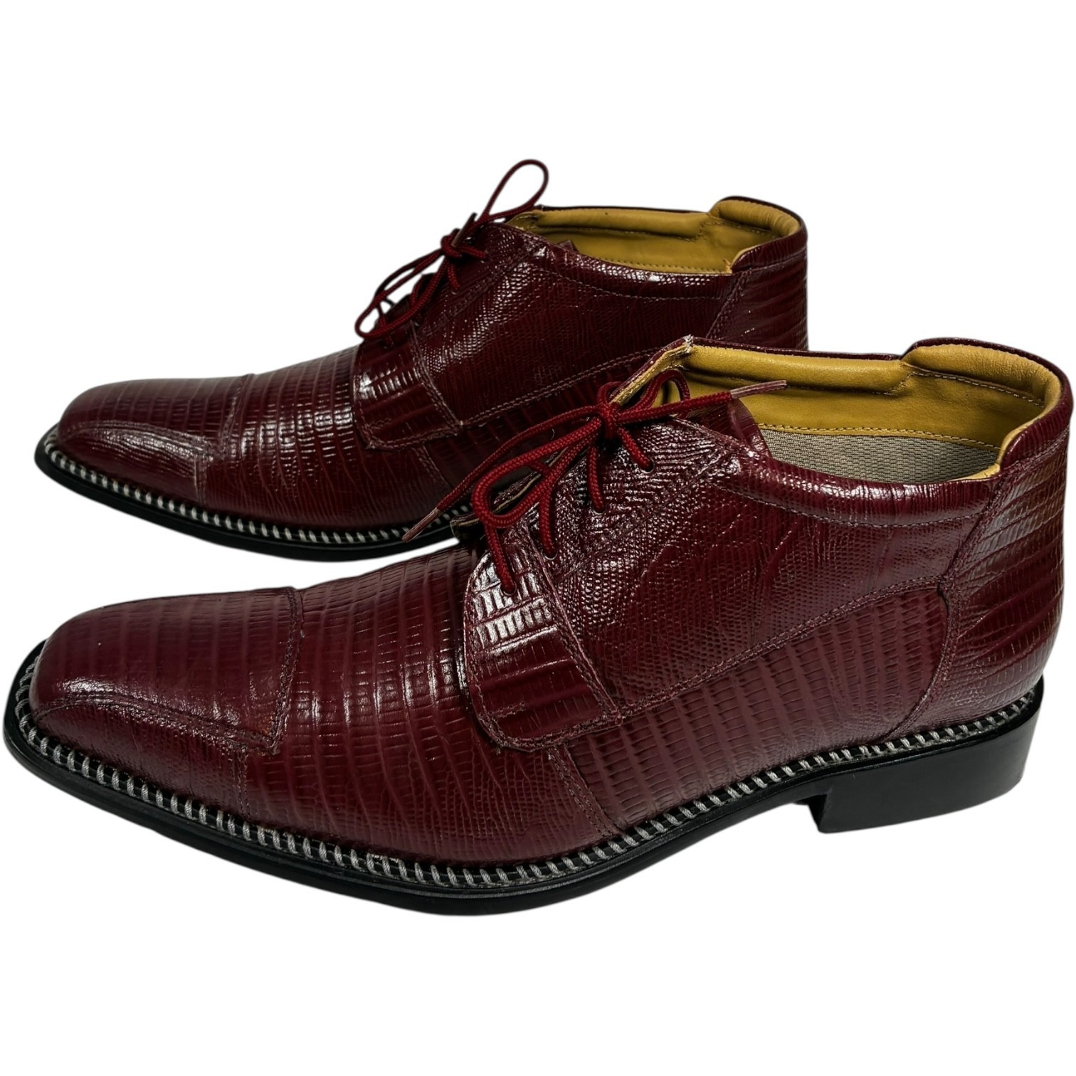 LibertyZeno mens Foxx Burgundy Leather Lizard Print Lace-up Ankle Boots size 9.5