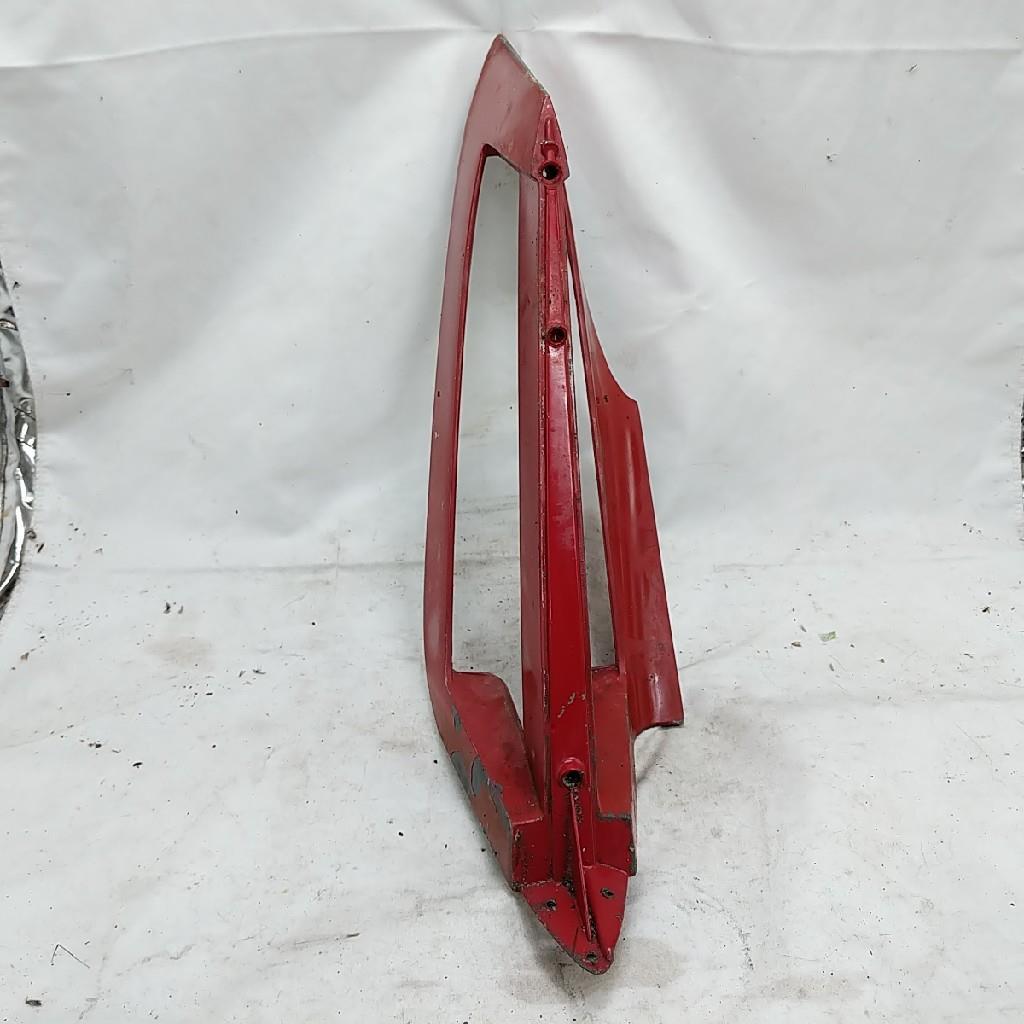 This is a metal trim surround for the right-hand side tail light of a 1967 Cadillac Eldorado. The trim is painted in red and is an original equipment manufacturer (OEM) part with part number 5958363. It was manufactured in the United States and is considered a vintage part. This metal trim surround is specifically designed for the 1967 Cadillac Eldorado and is not a universal fitment. It is not a performance part and is intended for use as an exterior accessory.