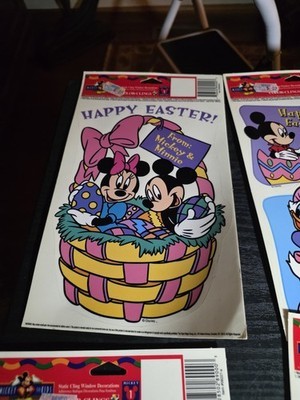 90's Vintage Easter Window Color Clings Lot Of 7 Sheets Disney Mickey