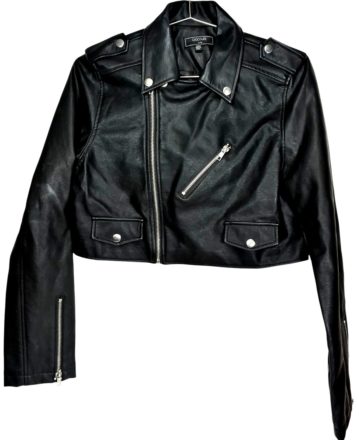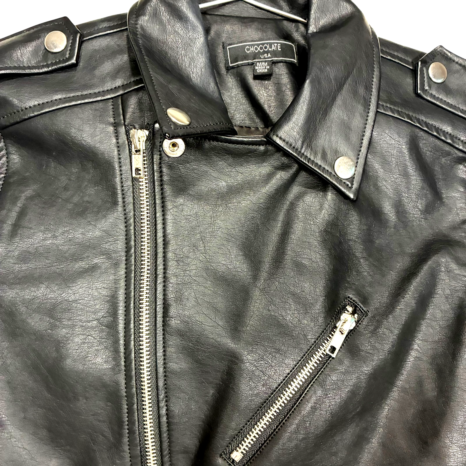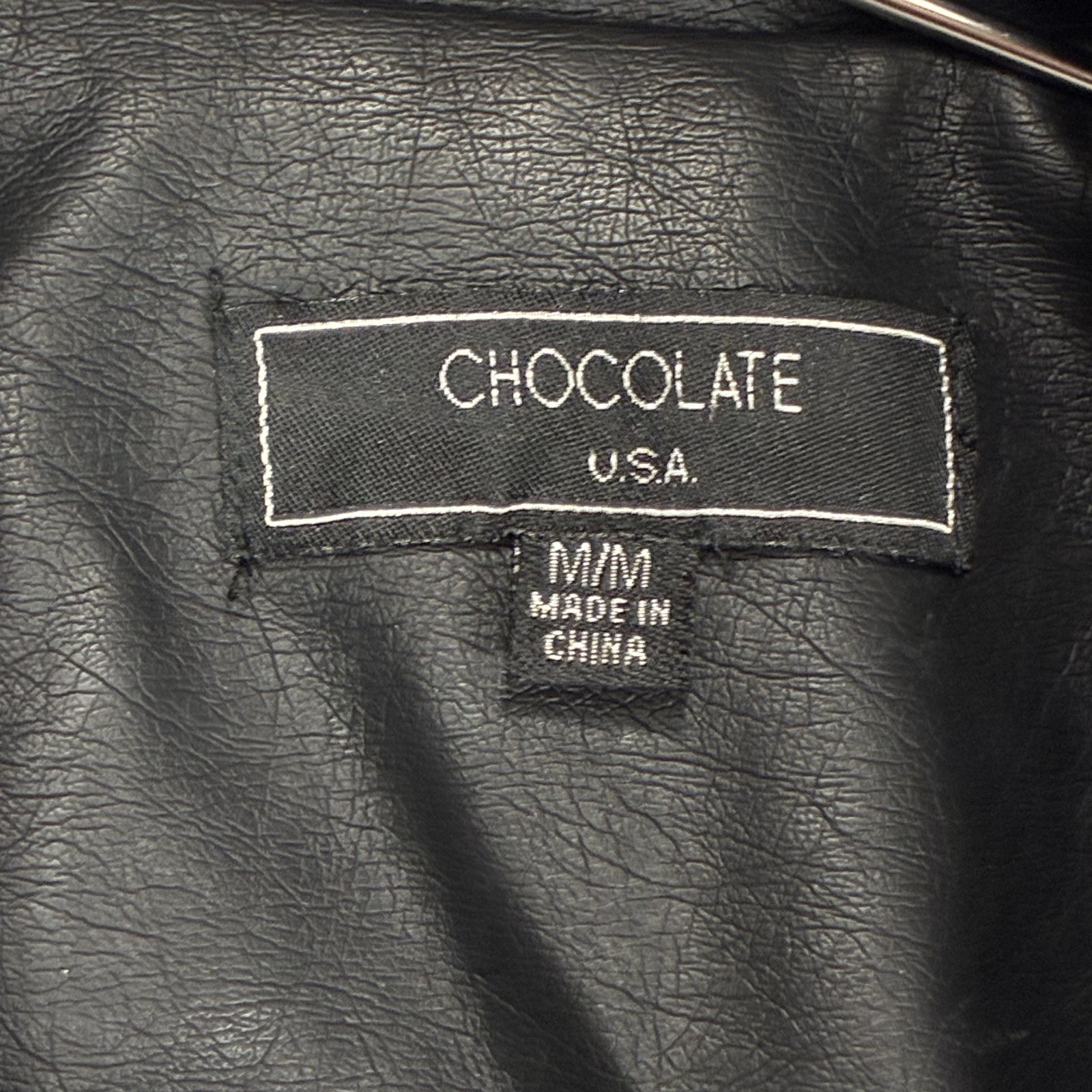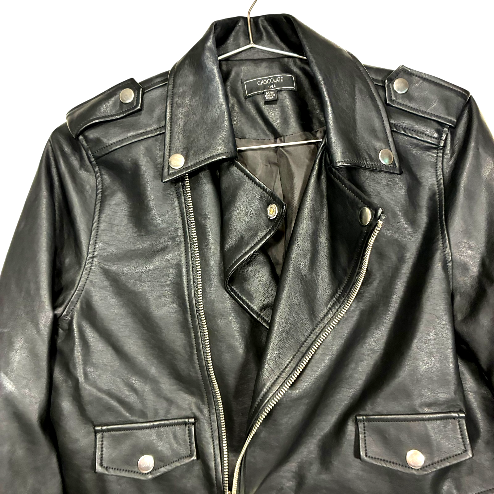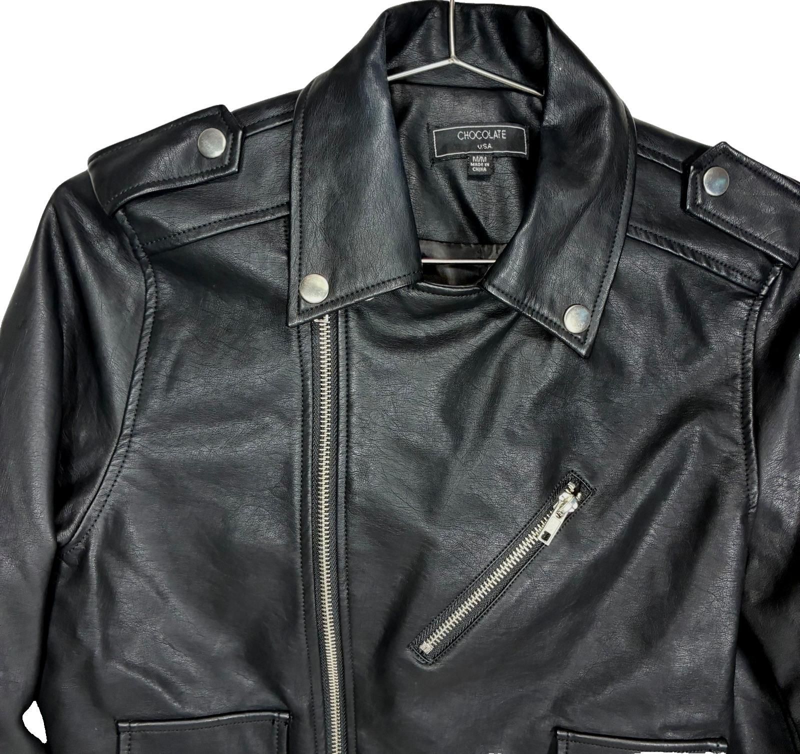 Chocolate USA women's Soft Faux Leather Black Biker Jacket Full Zip Sleeves size M