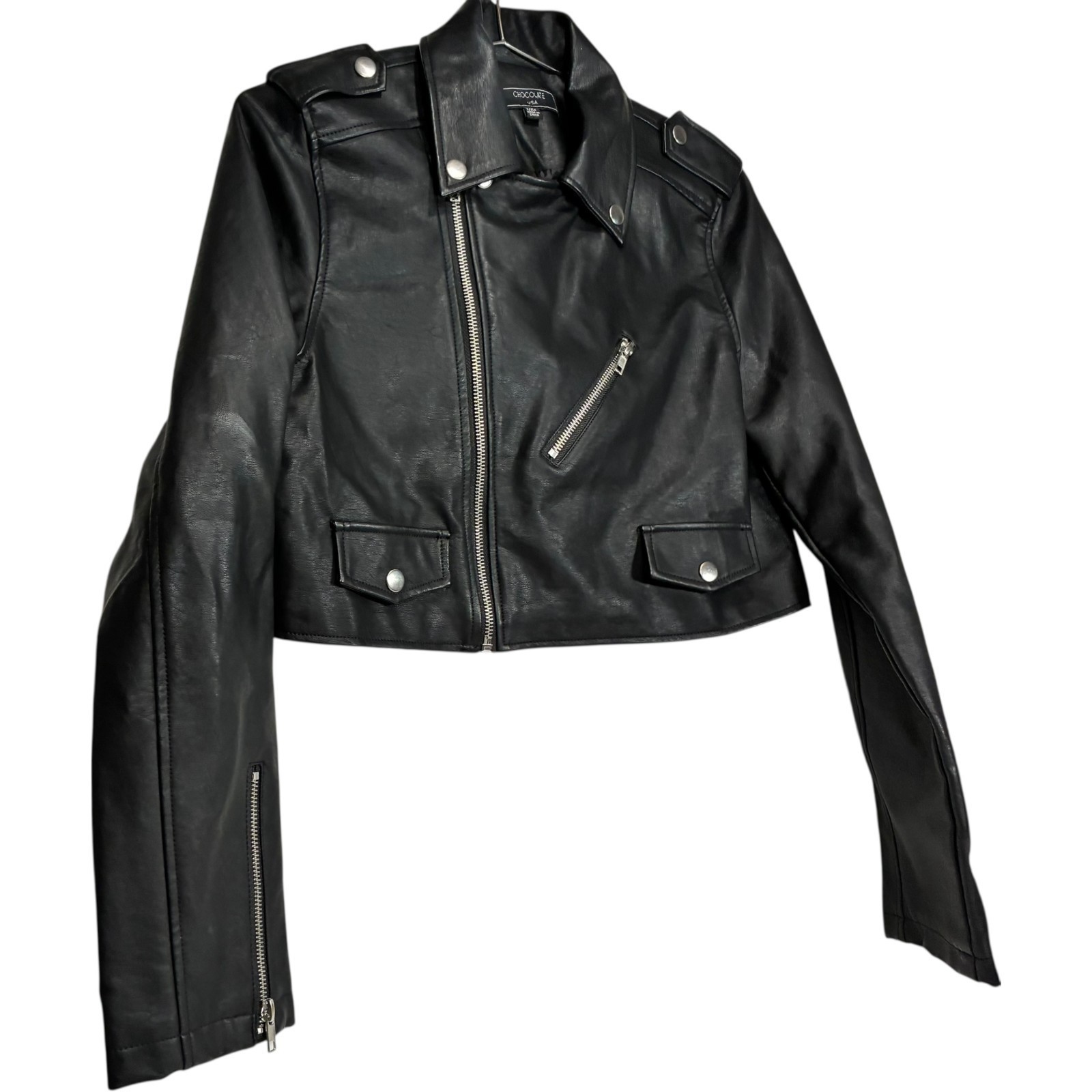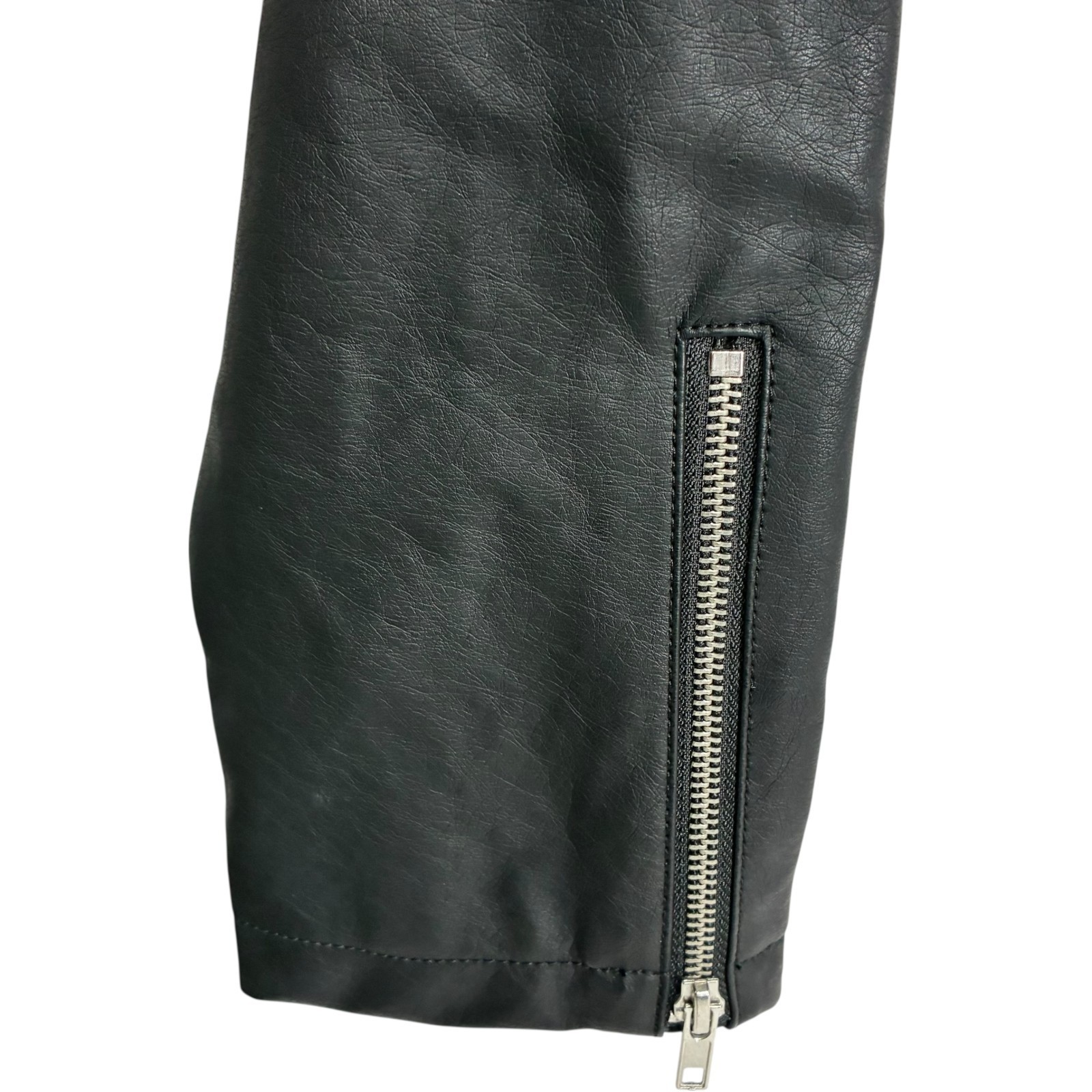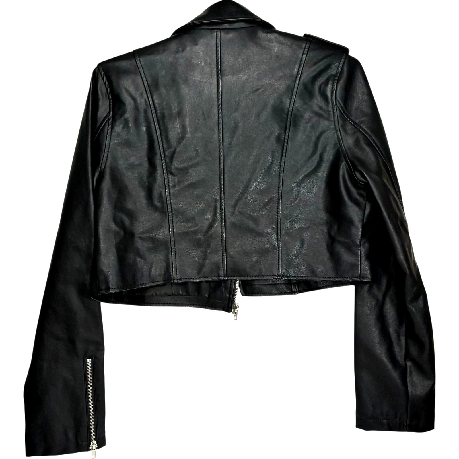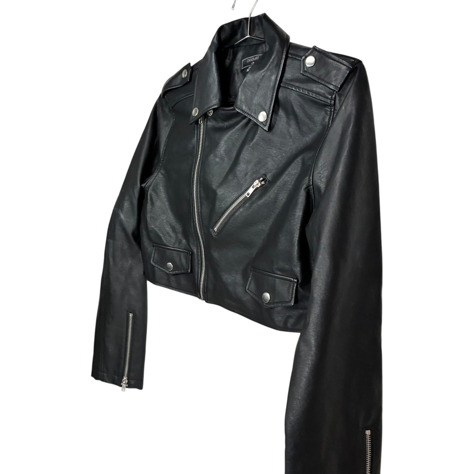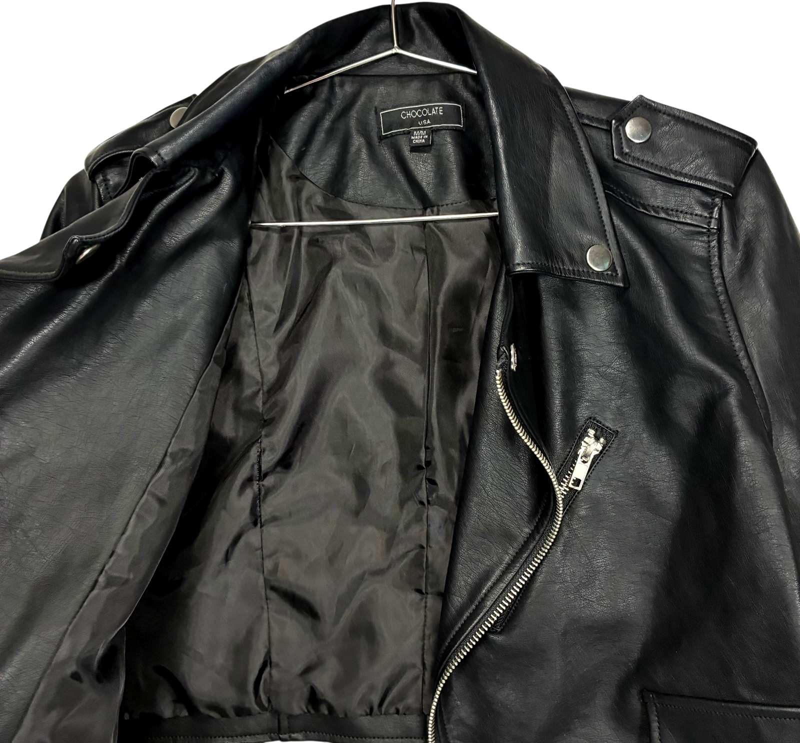 Chocolate USA women's Soft Faux Leather Black Biker Jacket Full Zip Sleeves size M
