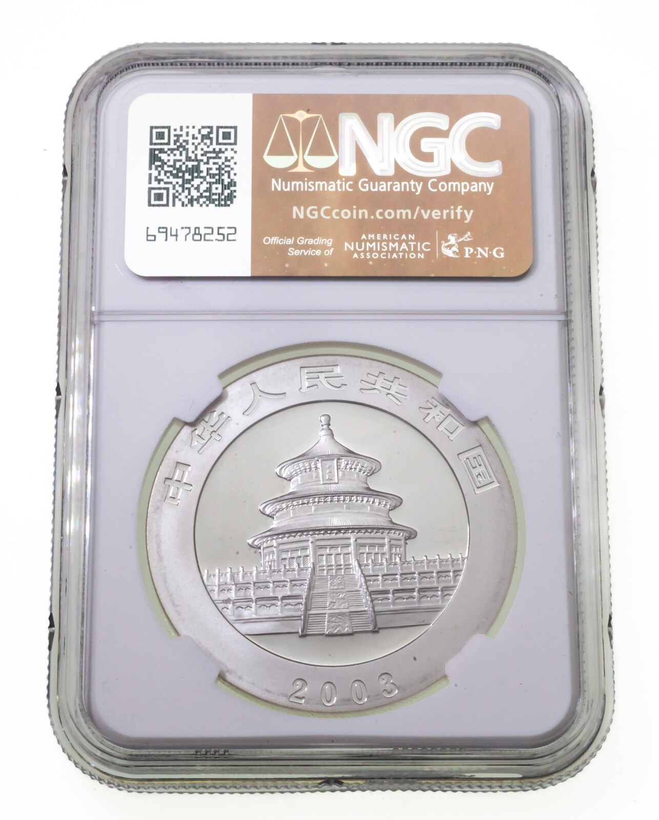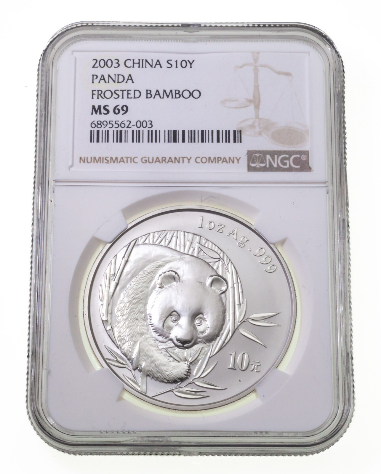 2003 Chine S10Y Argent Panda Givré Bambou NGC MS69 1 OZ