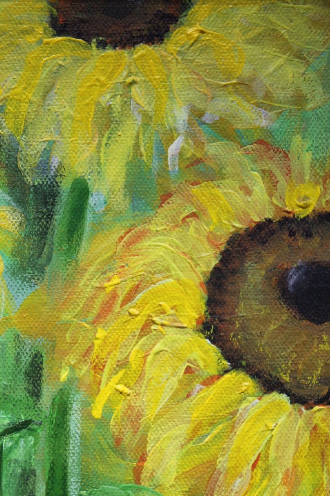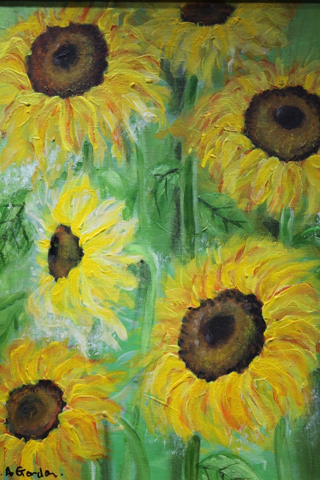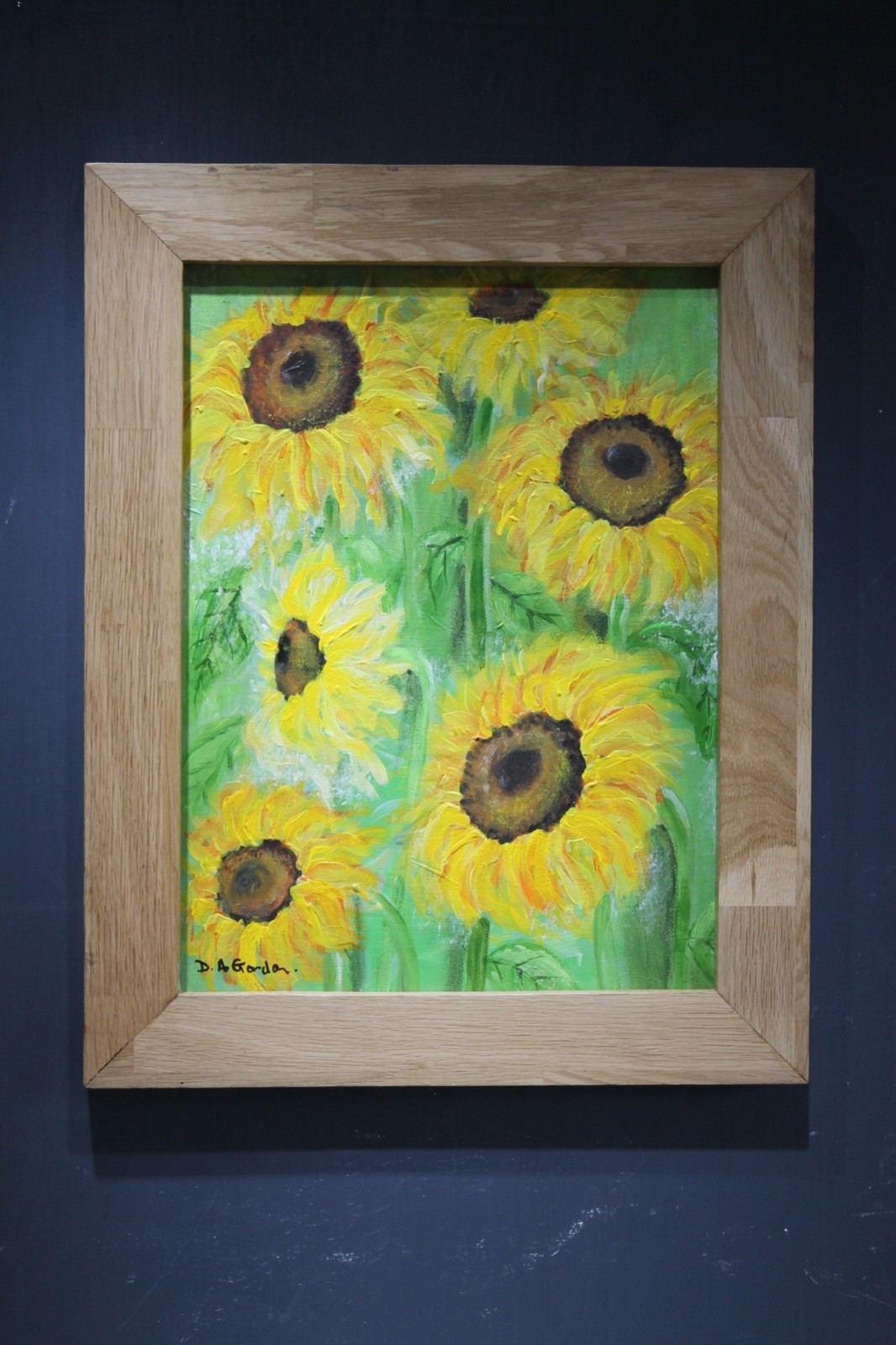 A bright and cheerful work depicting Sunflower heads in full bloom of high summer.