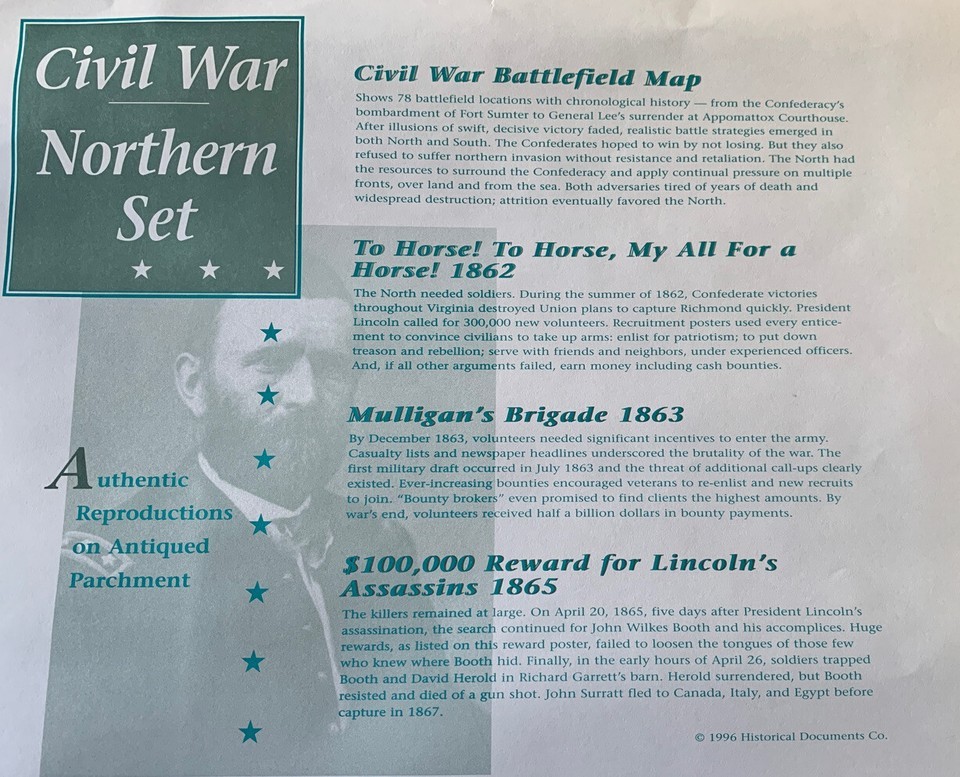 Civil War Document Set - Northern Edition Large Parchment replicas